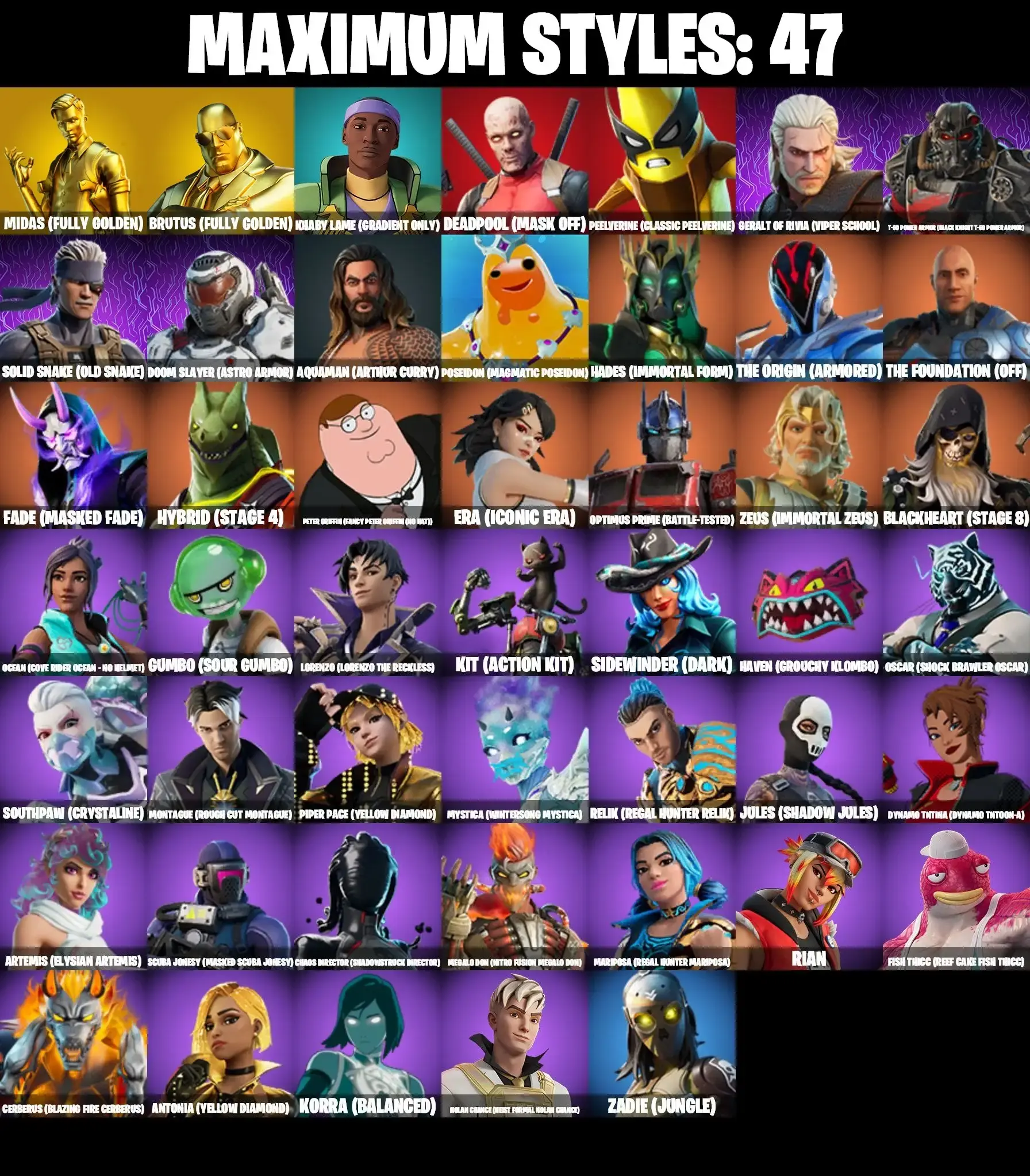240 SKINS | TRAVIS SCOTT | THE AXE OF CHAMPIONS 2.0 | BACKLASH | JOLTARA | CATWOMAN COMIC BOOK OUTFIT | TRACY TROUBLE | SPIDER-MAN NO WAY HOME | MJ | SPIDER-MAN | GENERAL GRIEVOUS | POE DAMERON | AHSOKA TANO | DARTH VADER | APPREN