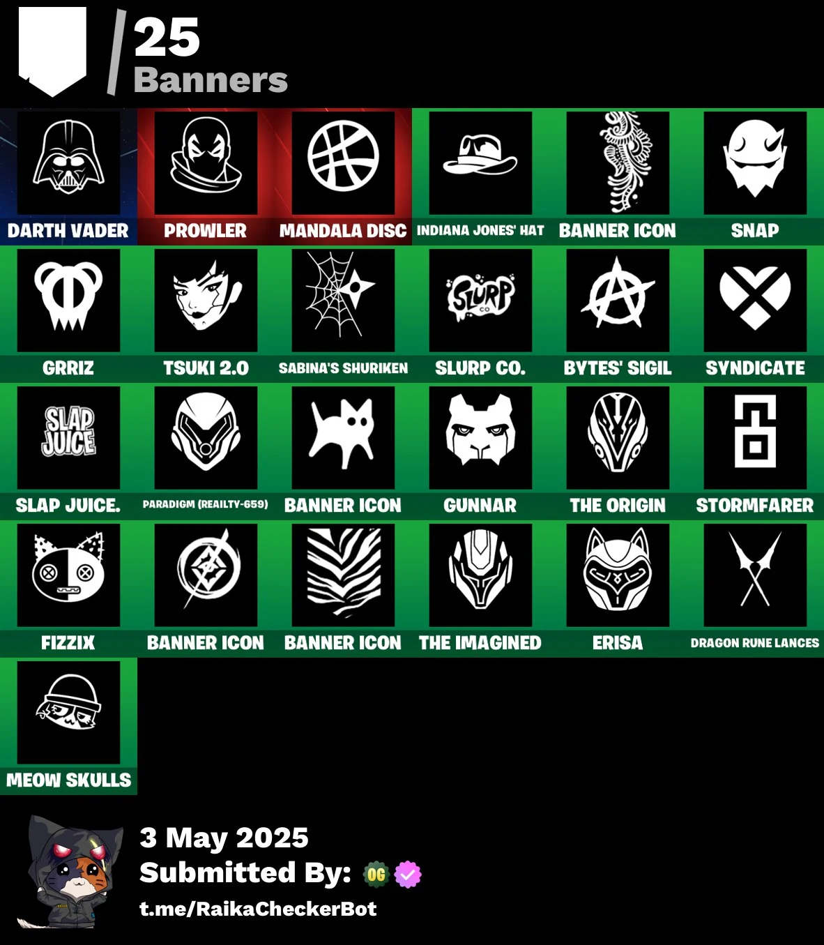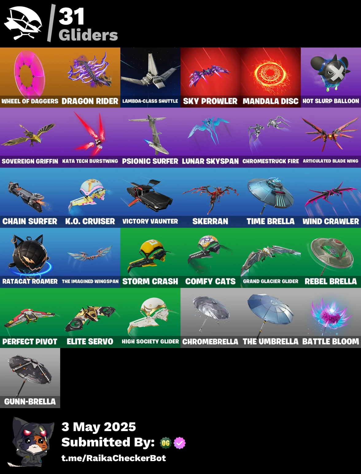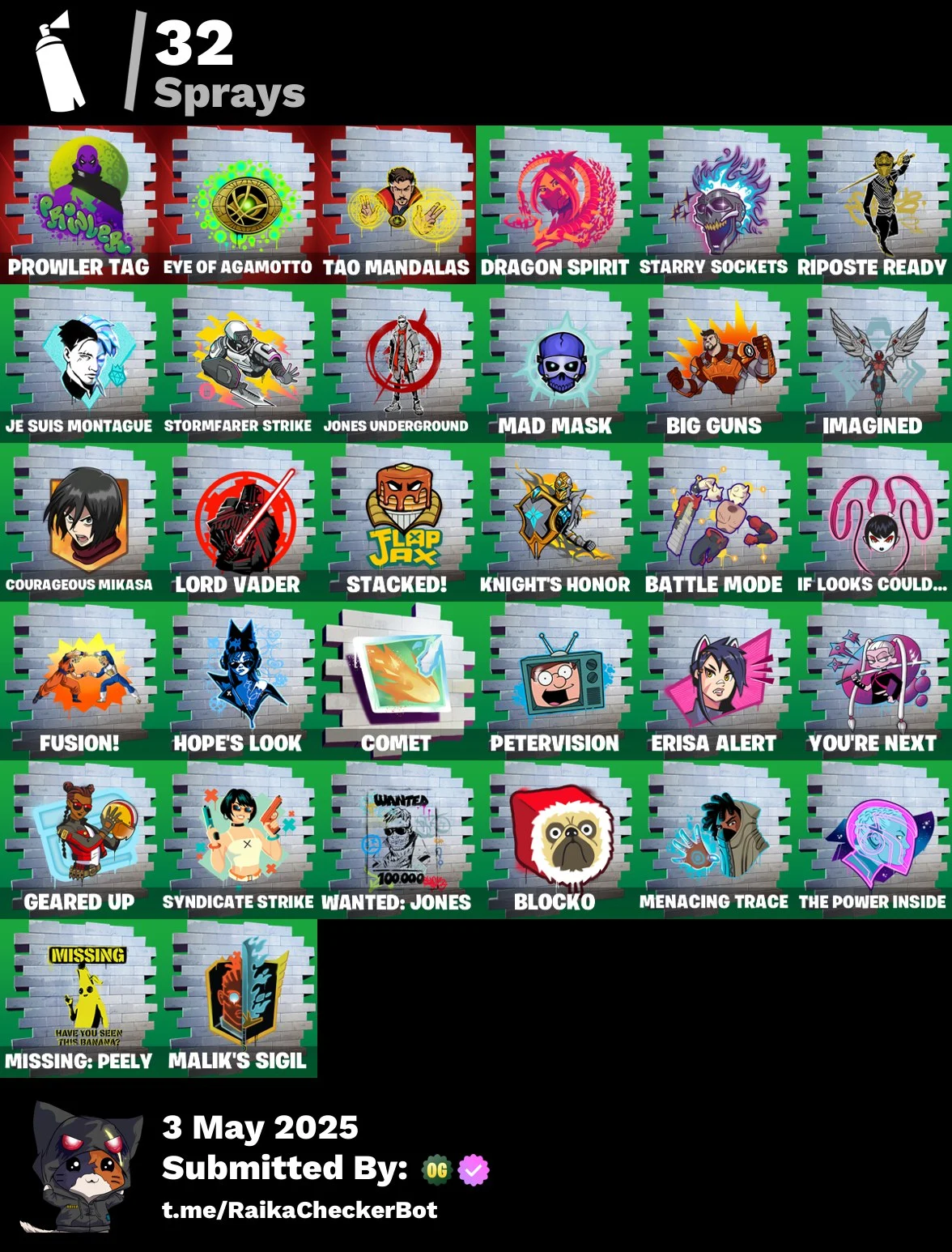 29 skins | Peter Griffin | Malik | The Imagined | The Origin | Snap | Paradigm (Reality-659) | Darth Vader | Prowler | Doctor Strange | 1450 VB