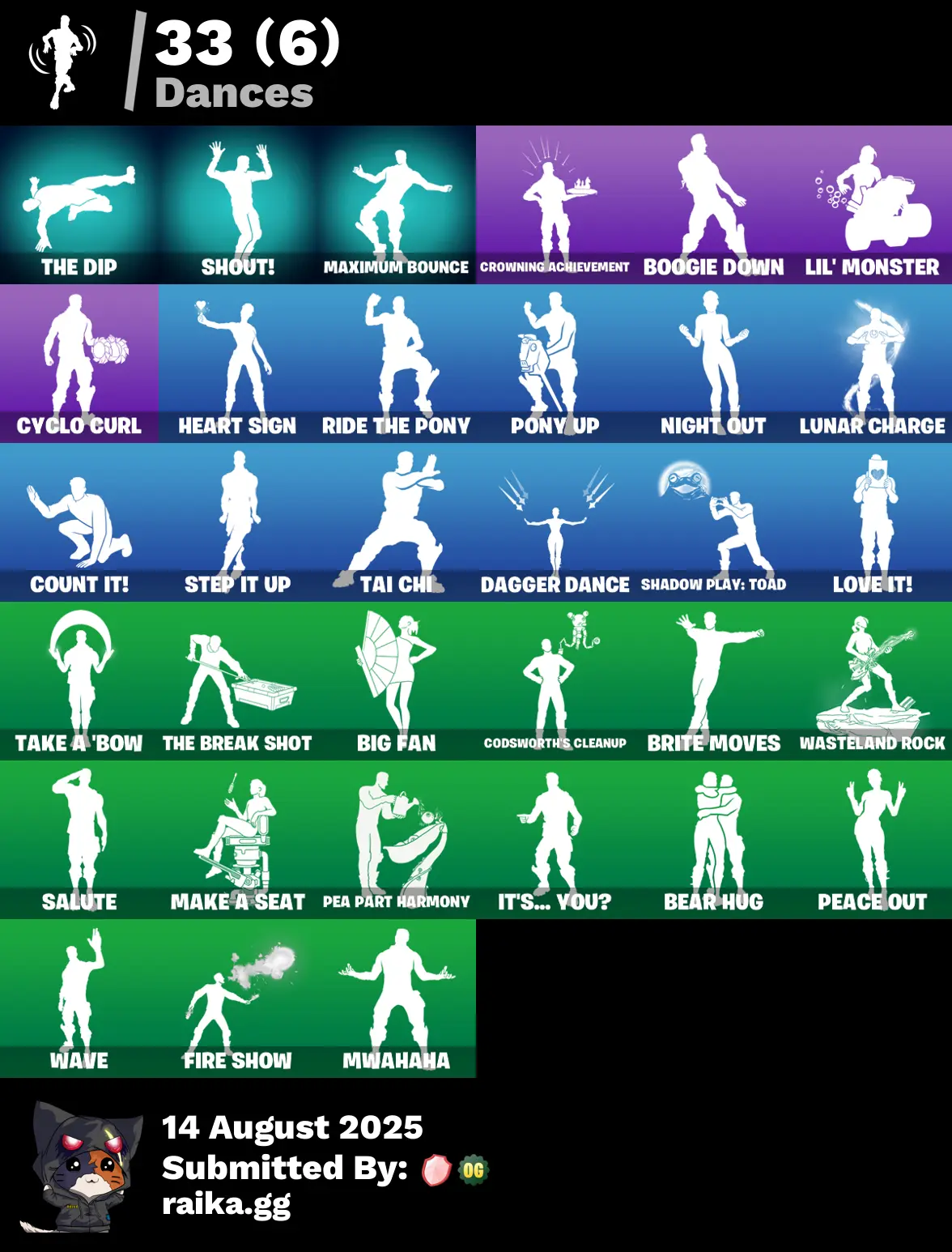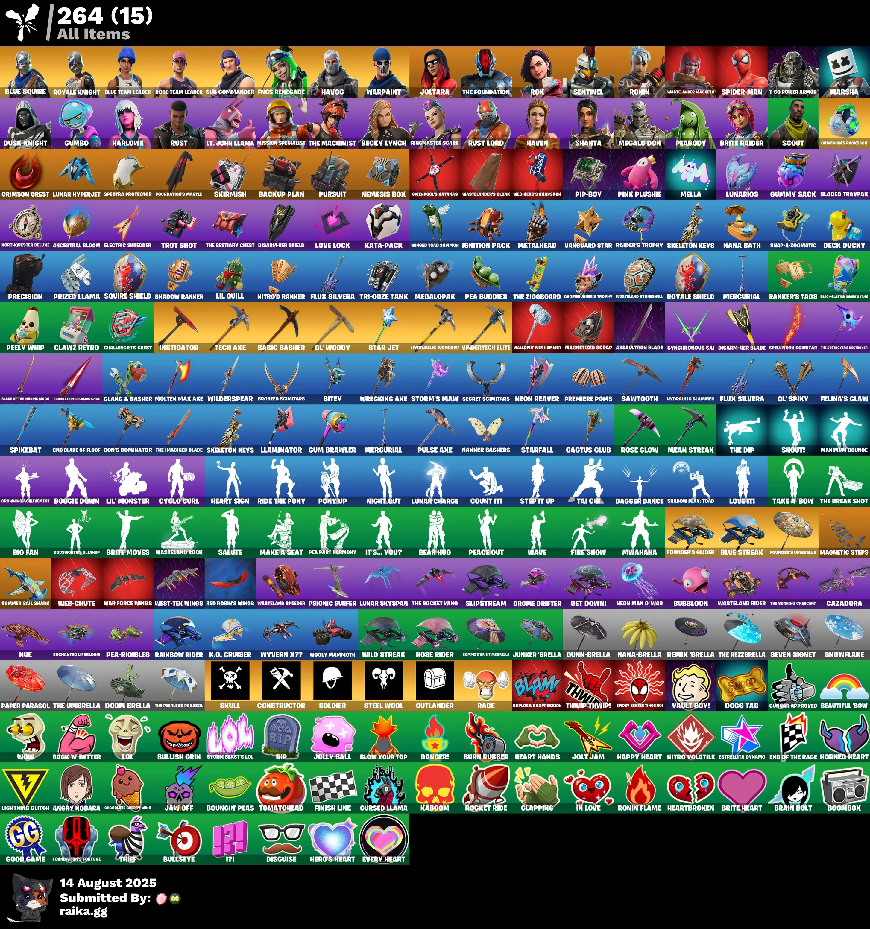 33 skins | Blue Squire❄️Royale Knight❄️Spider-Man❄️Ringmaster Scarr❄️Nue❄️Shout!❄️Dagger Dance❄️Bear Hug❄️Step It Up❄️Maximum Bounce❄️Mwahaha❄️Peace Out❄️Web-Chute❄️Founder's Glider❄️Crowning Achievement❄️Tai Chi❄️T-60 Power Armor❄️Salute❄️Scout D4306