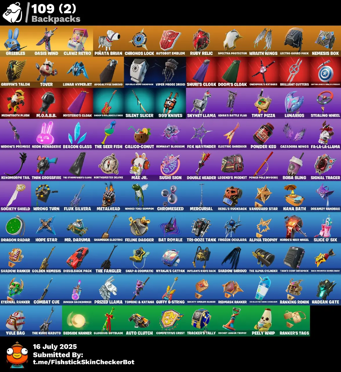 🦊 52 Skins [PC/PSN/XBOX] 🌺 Explorer Emilie 💫 Xander ⚔️ Malik 🤖 Optimus Prime 🐉 Son Goku 🤖 Snap 🌅 Era 🪐 Darth Vader 💥 Gwenpool 🪄 FTN100