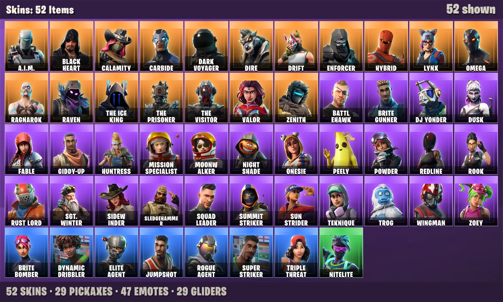 ⭐️ 52 Skins | Take The L + Omega + The Visitor + Elite Agent + Rogue Agent + Carbide + Drift + Raven | 150 VB