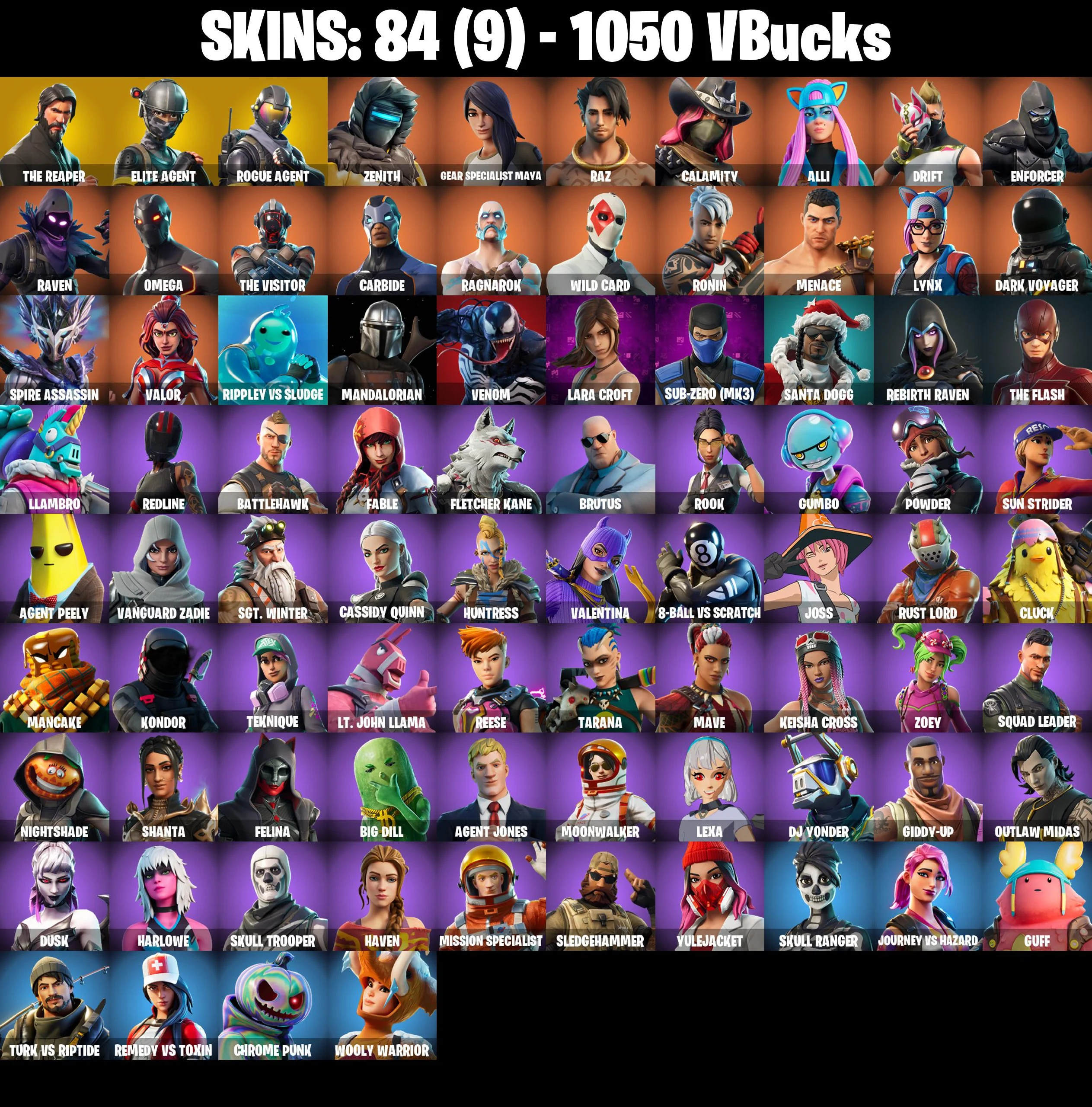 🎆84 SKINS ⚡️PC/PSN⚡️ THE REAPER 👑 ELITE AGENT 👑 ROGUE AGENT 👑 ZENITH 👑 GEAR SPECIALIST MAYA 👑 RAZ 👑 CALAMITY 👑 ALLI 👑 DRIFT 👑 ENFORCER ⚡️ 1050 VB #M640