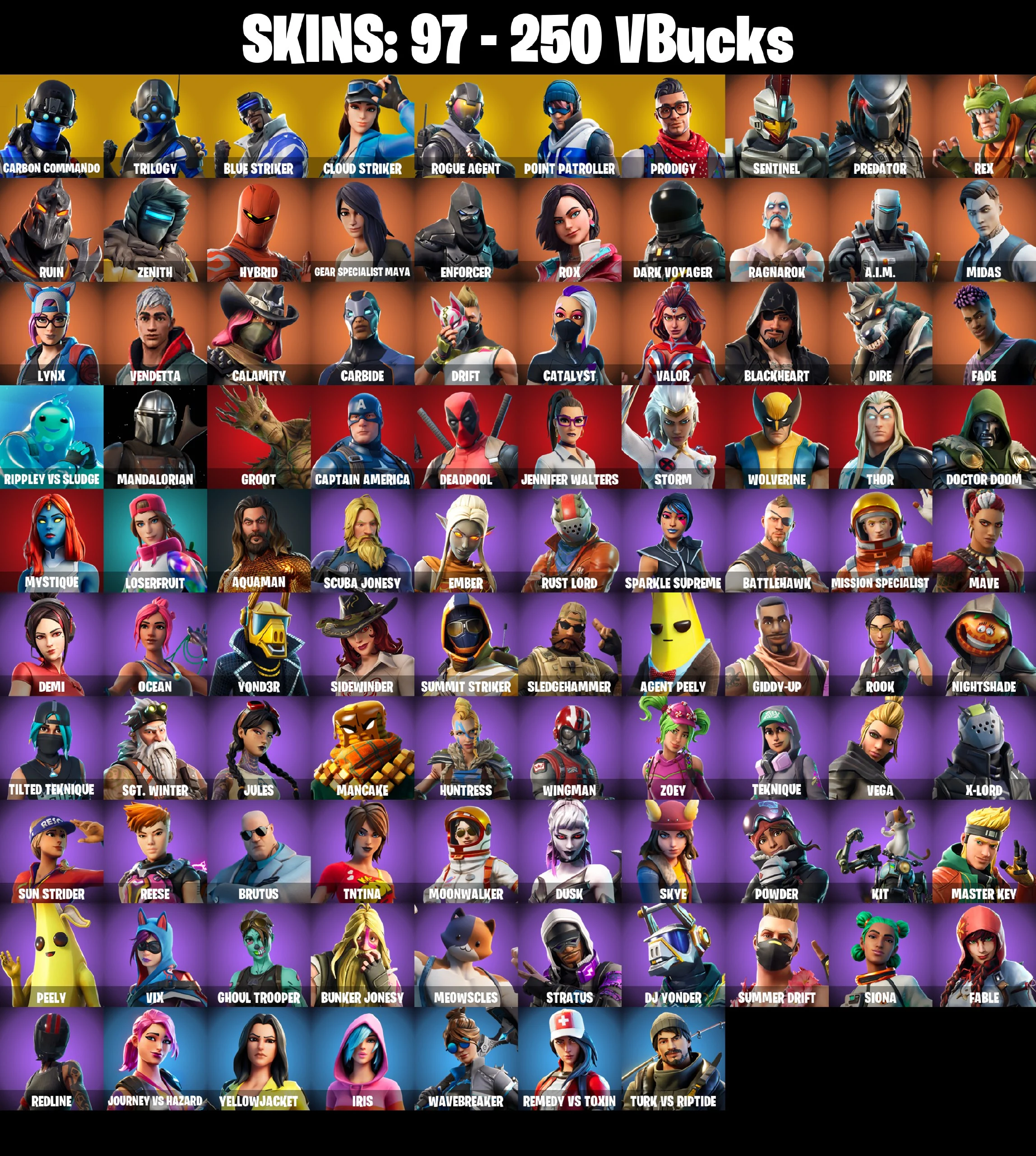 🎆97 SKINS ⚡️PC/XBOX⚡️ CARBON COMMANDO 👑 TRILOGY 👑 BLUE STRIKER 👑 CLOUD STRIKER 👑 ROGUE AGENT 👑 POINT PATROLLER 👑 PRODIGY 👑 SENTINEL ⚡️ 250 VB #M636