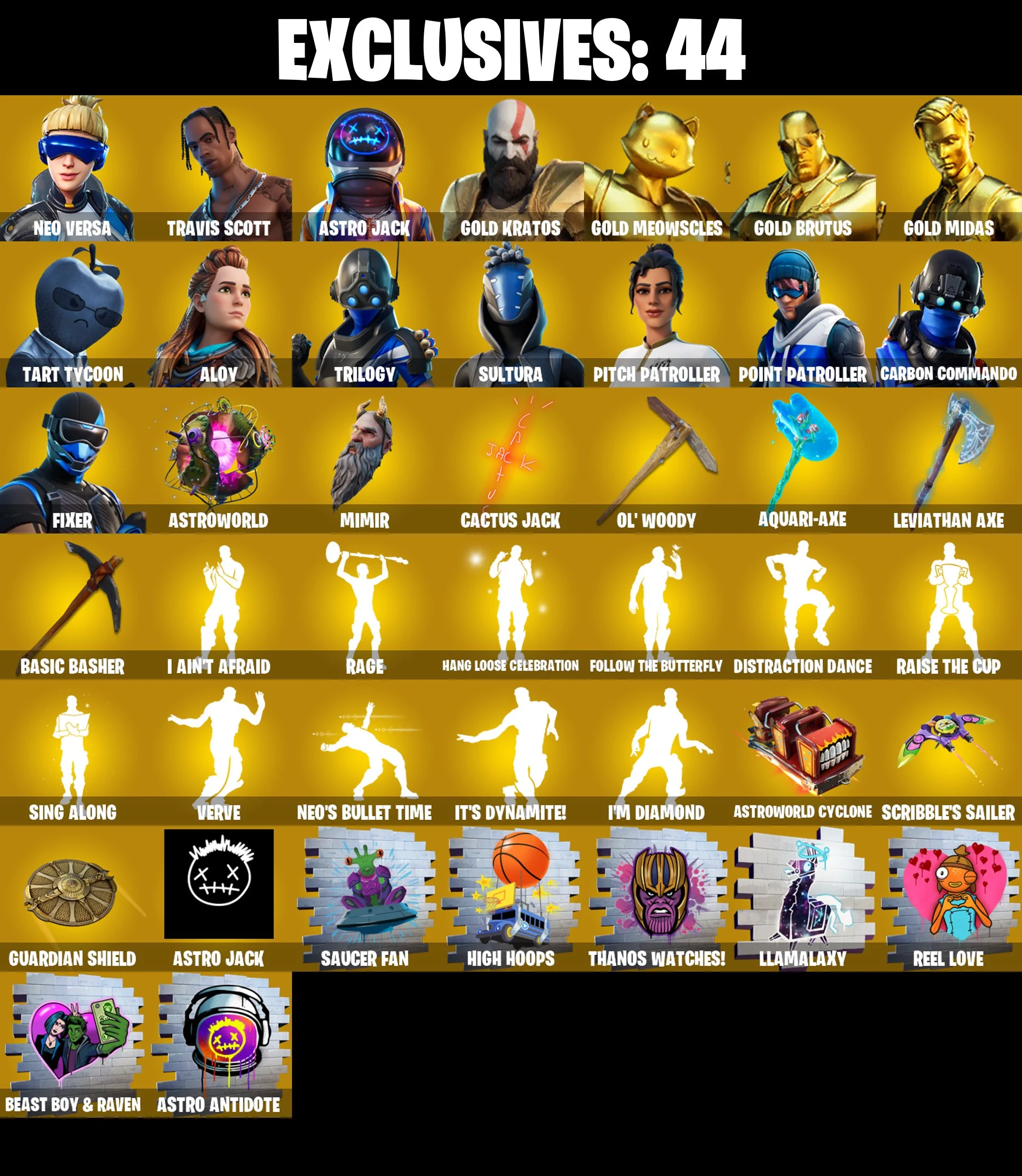 ✨ EXCLUSIVE OFFER⚡️(PC/XBOX) 1350 VB) 298 SKINS 💫 Travis Scott 🔥 Neo Versa 💎 Astro Jack 🔥 Gold Kratos 💎 Gold Meowscles 🔥 Gold Brutus 💎 Gold Midas 🔥 Tart Tycoon | PARENTAL CONTROL