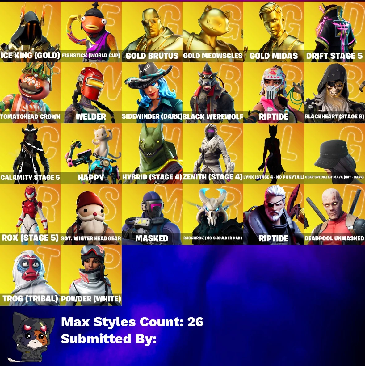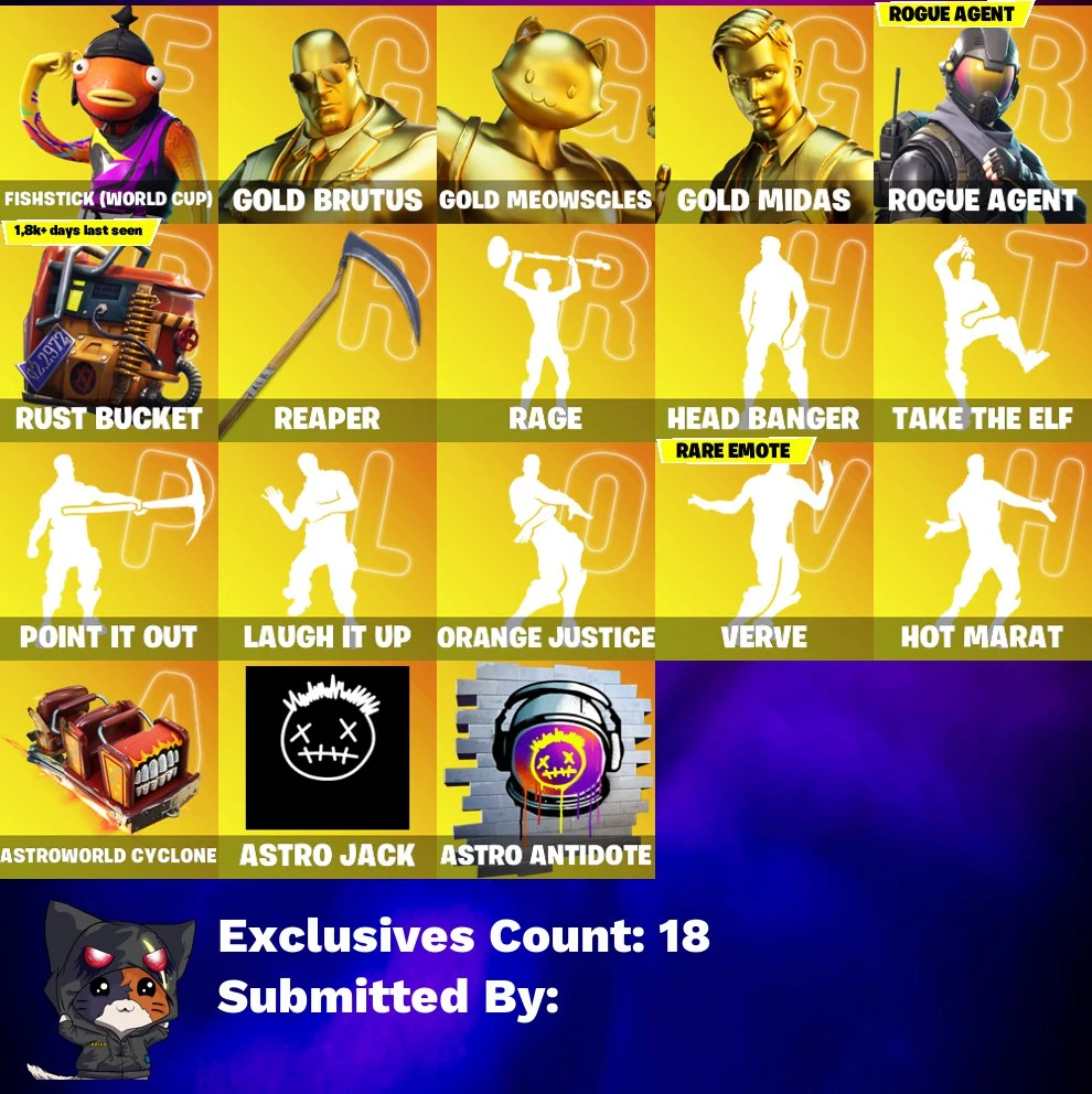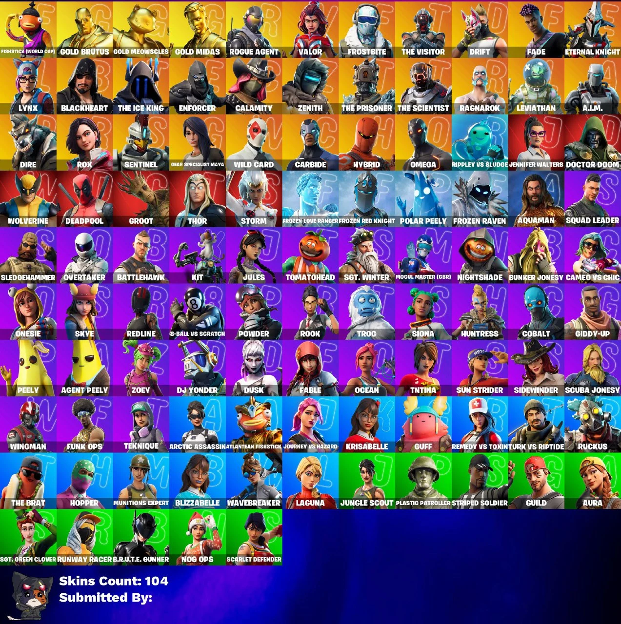 💥🌟 LIMITED OFFER 🌟💥 104 SKINS 💎 FISHSTICK (WORLD CUP) 💎 GOLD BRUTUS 💎 GOLD MEOWSCLES 💎 GOLD MIDAS 💎 ROGUE AGENT 💎 VALOR 💎 FROSTBITE 💎 THE VISITOR 💎 DRIFT 💎 FADE 💎 ETERNAL KNIGHT 💎 LYNX 💎 BLACKHEART 💎 THE ICE KING 💎 REAPER 💎 180 VB 💎 FULL ACCESS 💎