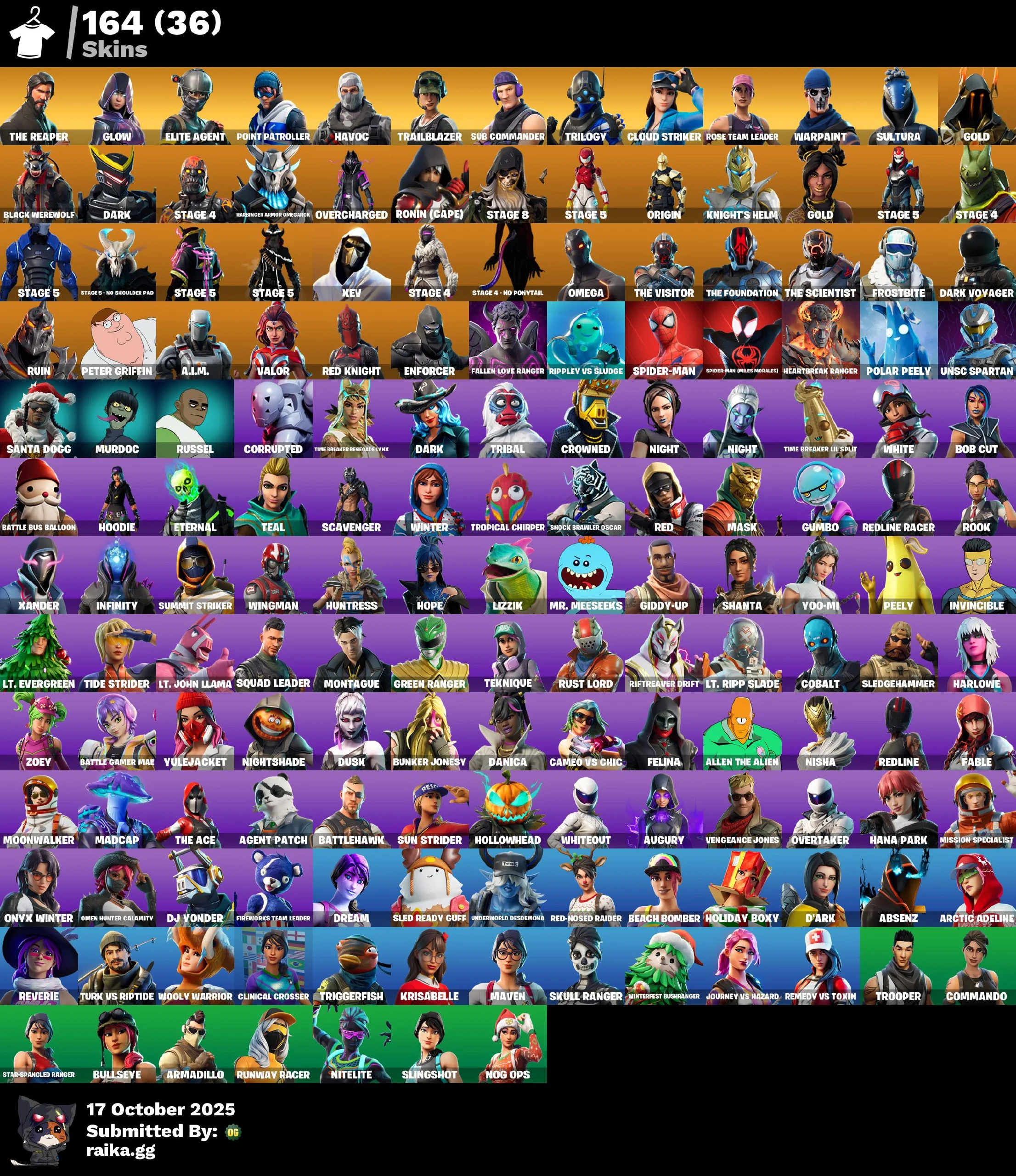 [PC] 164 skins | OG STW | The Reaper | Take The L | Glow | Elite Agent | Spider-Man (Miles Morales) lai442