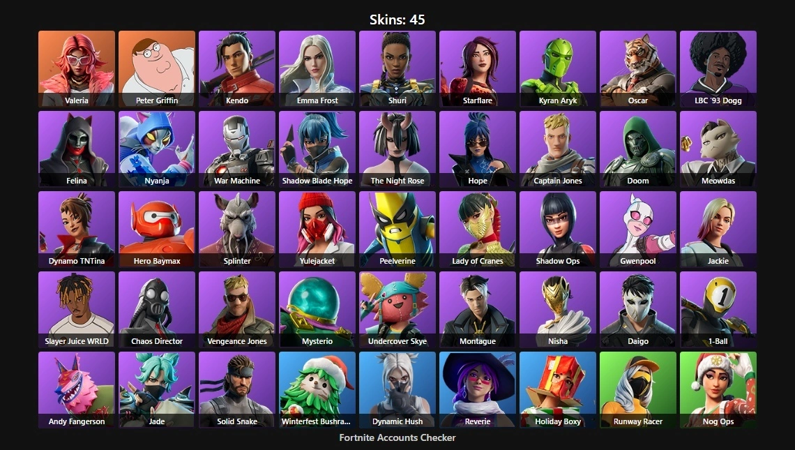 PC 45 Skins⚡ | Valeria | Peter Griffin | Kendo | Emma Frost | Shuri | Starflare | Kyran Aryk | Oscar | LBC '93 Dogg | Felina | Nyanja | War Machine