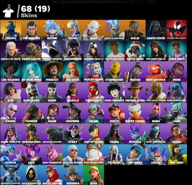 [PC] 68 skins | Trilogy | The Ageless | Nezumi | Mizuki | Snap | Renzo the Destroyer | Malik | Darth Vader | Spider-Man (Miles Morales) | 300 VB
