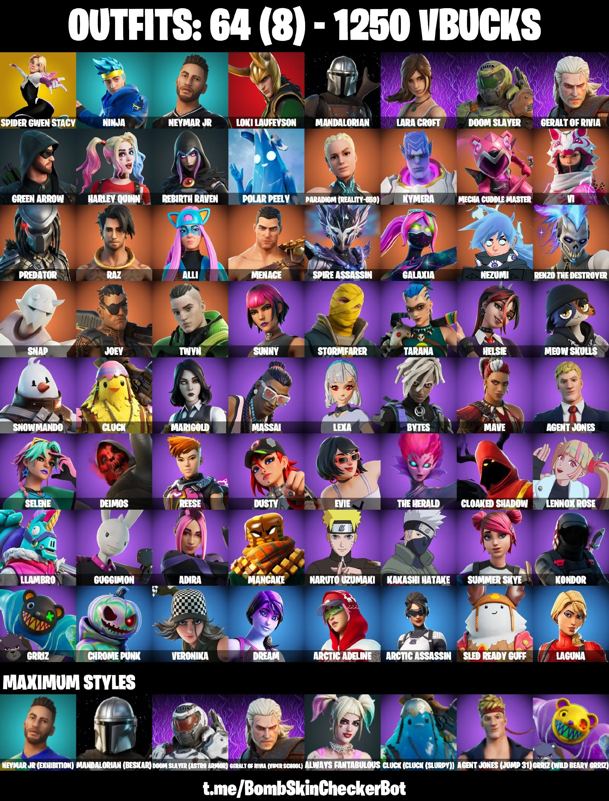 💎[PC|PSN|XBOX|NINTENDO]💎 64 Skins ⭐️ Spidergwen (Stacy) ⭐️ Galaxia ⭐️ Loki Laufeyson ⭐️ 100% Warranty ✅ Mail Changeable ✅ 1250 VBucks