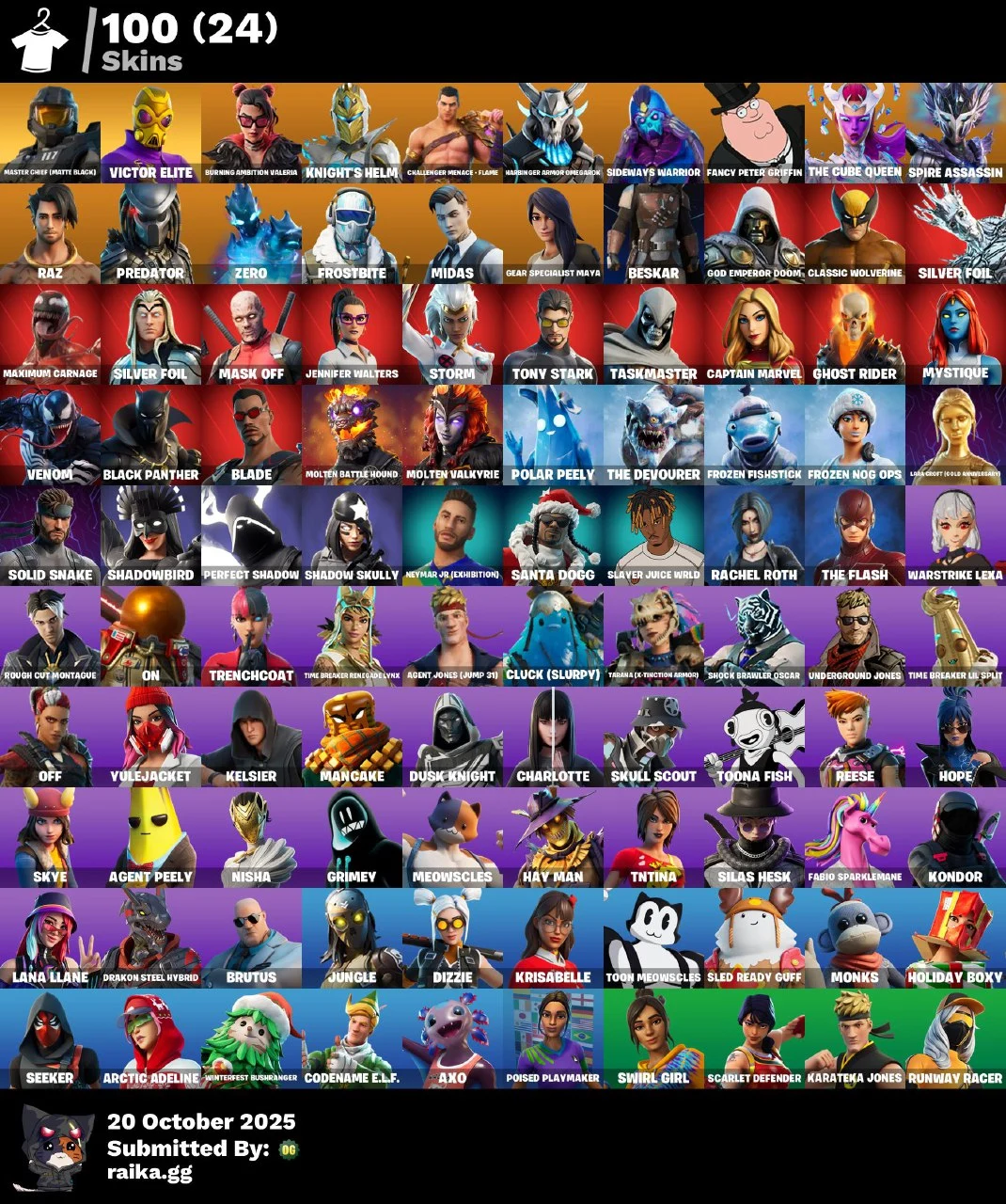 [PC/PSN] 100 skins | Tony Stark | Mystique | Get Griddy | Ice Breaker | Master Chief (Matte Black) mssh814