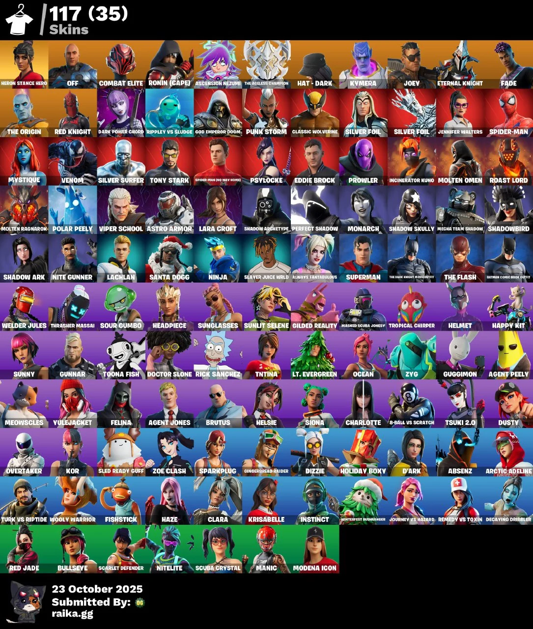 [PC/PSN] 117 skins | Lara Croft | Tony Stark | Harley Hitter | Mystique | Star Wand | Get Griddy mssh890