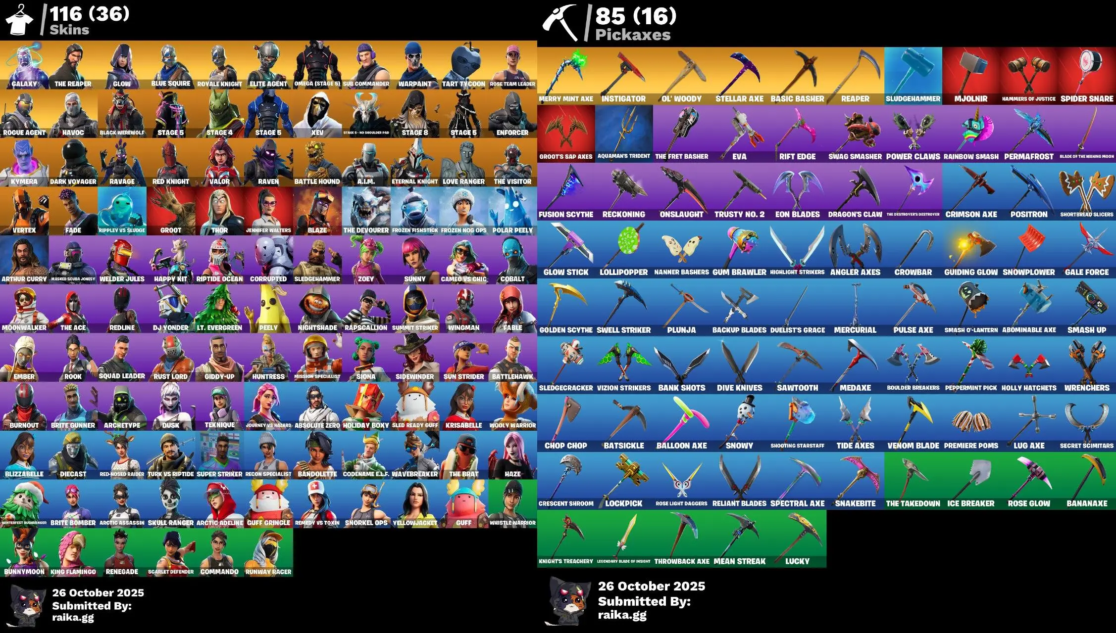 [PC/PSN/XBOX] 116 skins | Galaxy | The Reaper | Glow | Blue Squire | Royale Knight | Elite Agent | OG SWT | Take The L | Merry Mint Axe MN2