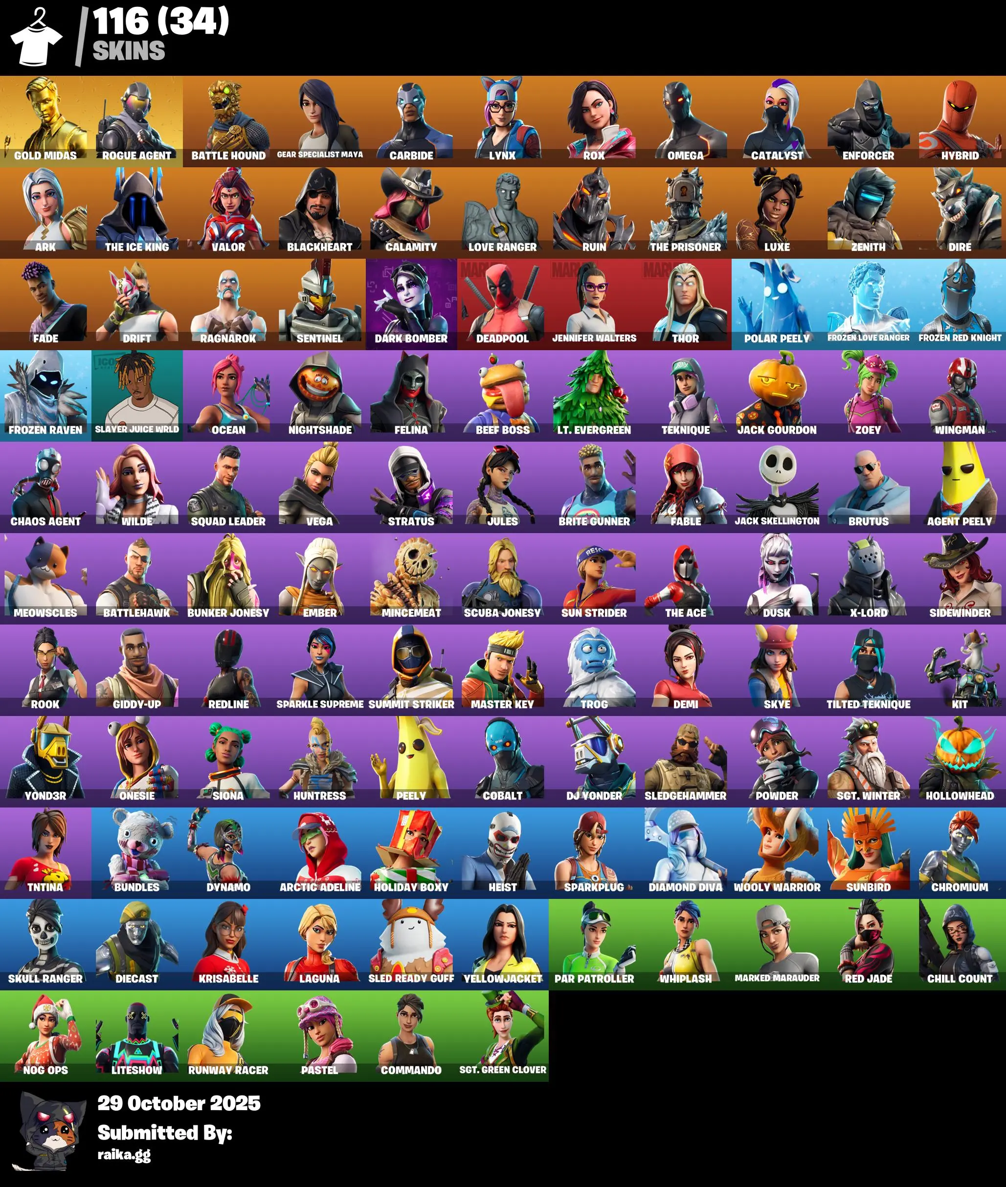 [PC/PSN/XBOX] 116 skins | Gold Midas | Rogue Agent | Battle Hound | Gear Specialist Maya | Carbide | Lynx | Rox | Omega | Catalyst | Enforcer | Hybrid | Ark | 650 VB