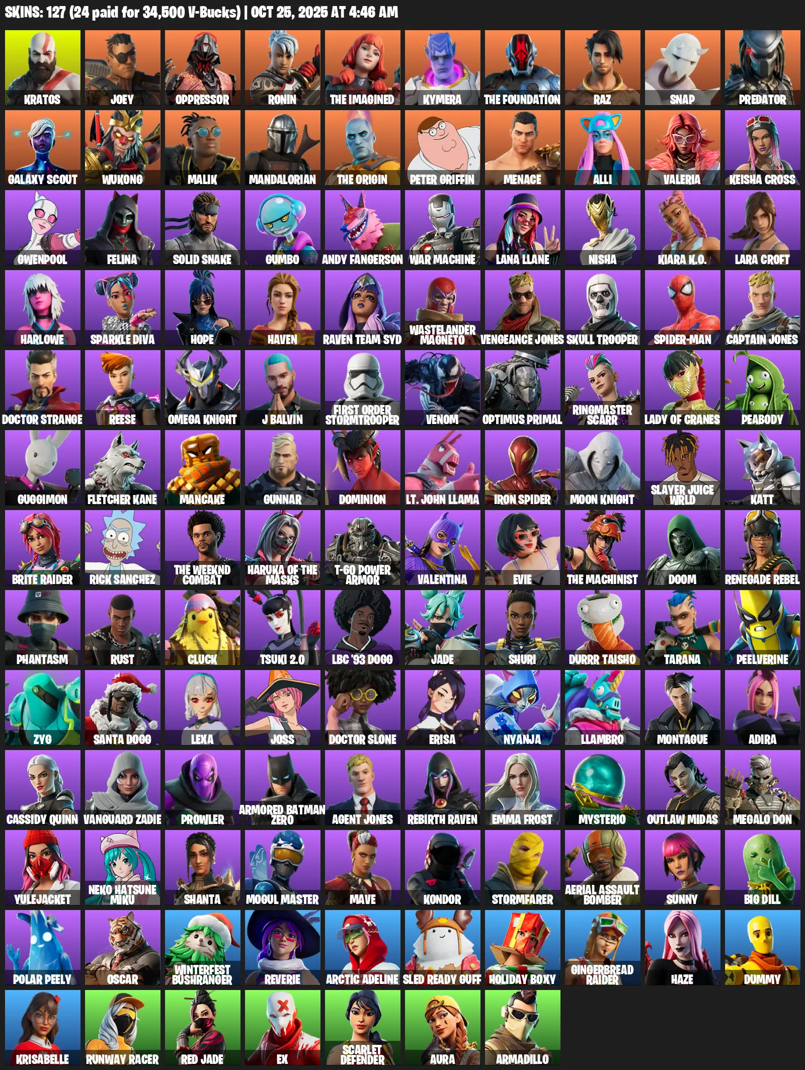 [PC/PSN/XBOX] | 127 skins | Lara Croft | Kratos | Joey | Oppressor | Ronin | The Imagined | Kymera | The Foundation | Raz | Snap | #GIF3530 | #MBFN