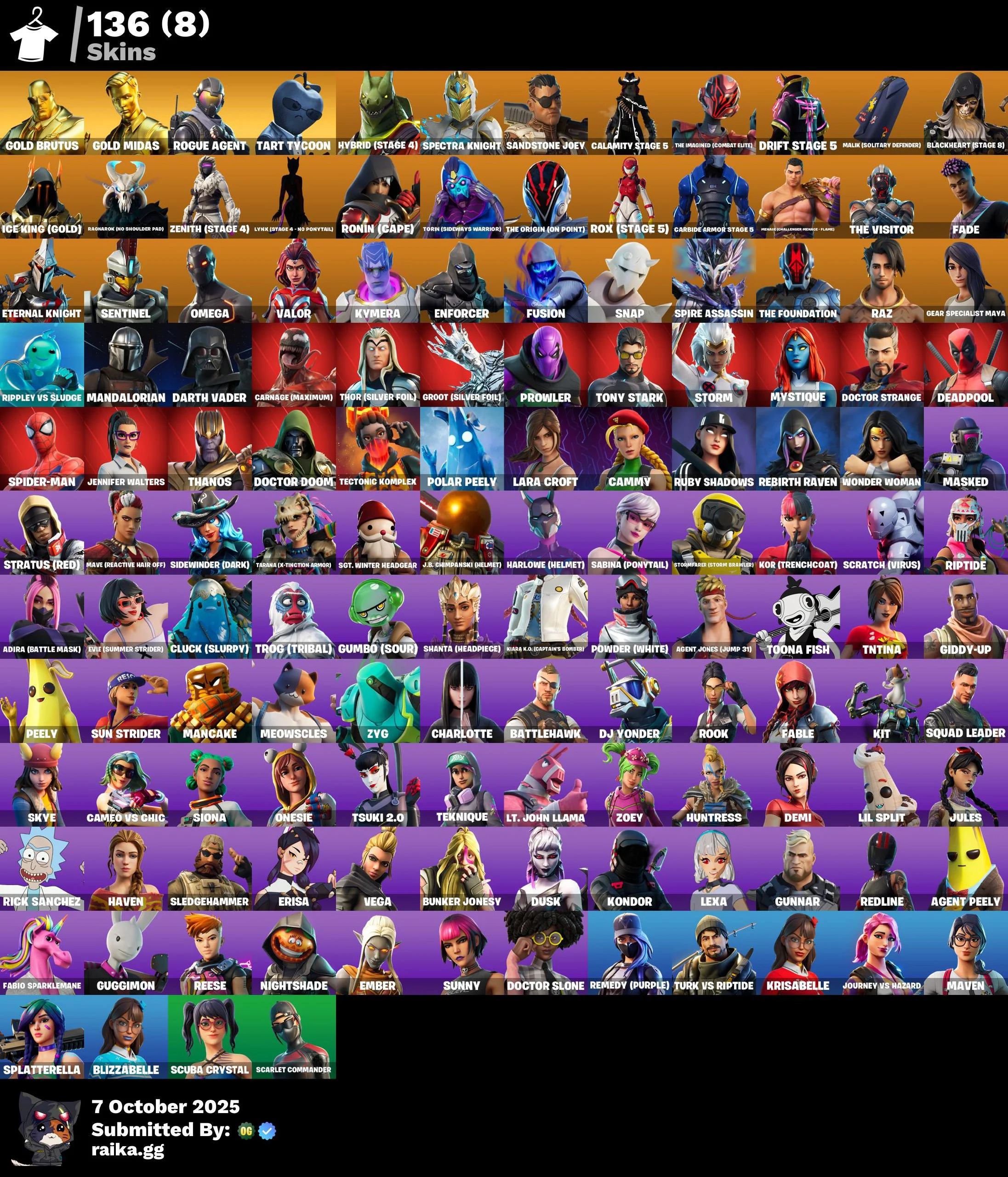 🔥[PC/PSN/XBOX] 136 skins | Cammy | Jules | Lara Croft | Tony Stark | Peely | Omega | Deadpool | Mystique lai080