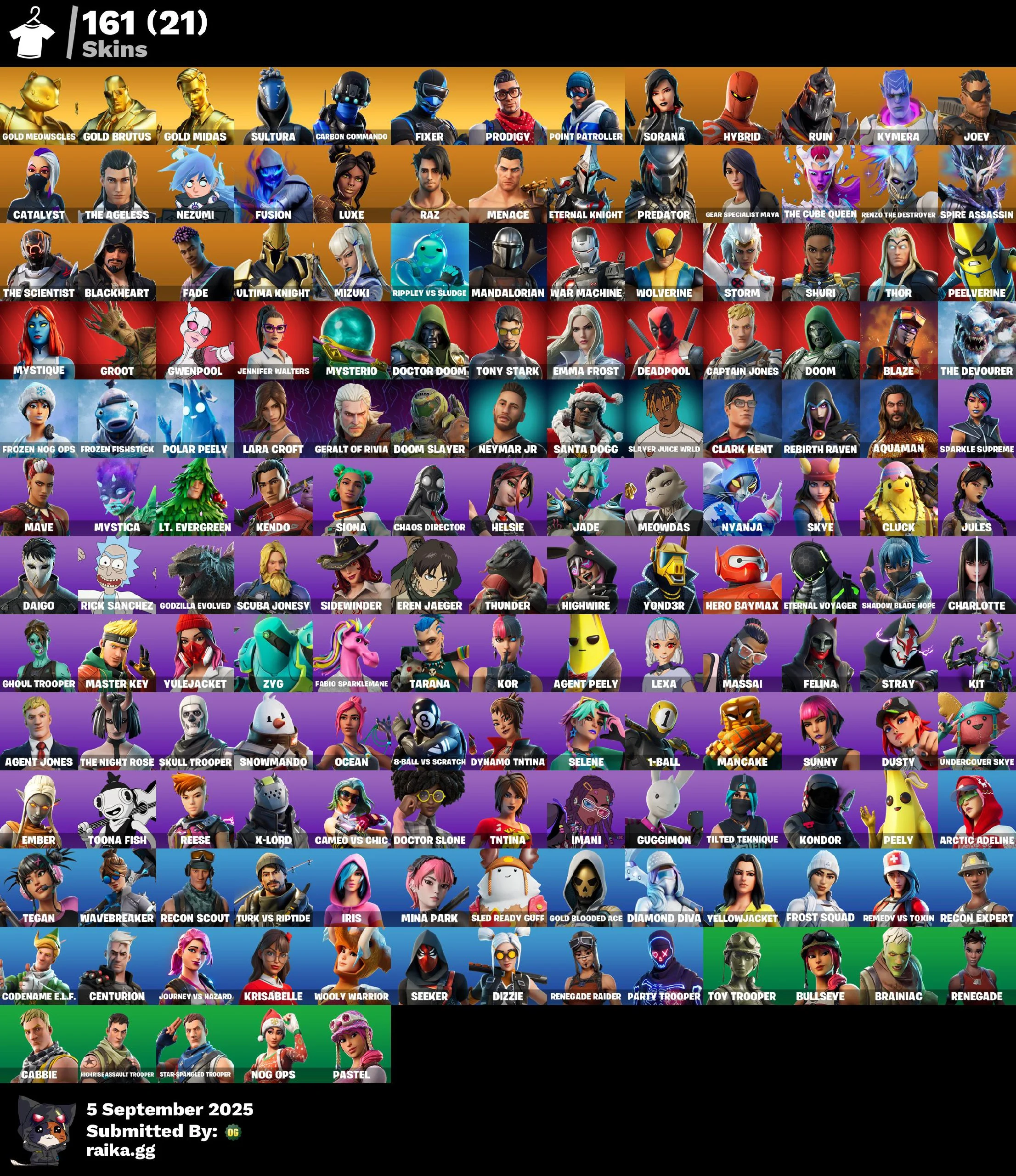 ⭕️ PC/PSN/XBOX⭕️ 161 skins | Renegade Raider | Gold Meowscles | Gold Brutus | Gold Midas | Sultura | Carbon Commando | Fixer | Prodigy | #S9