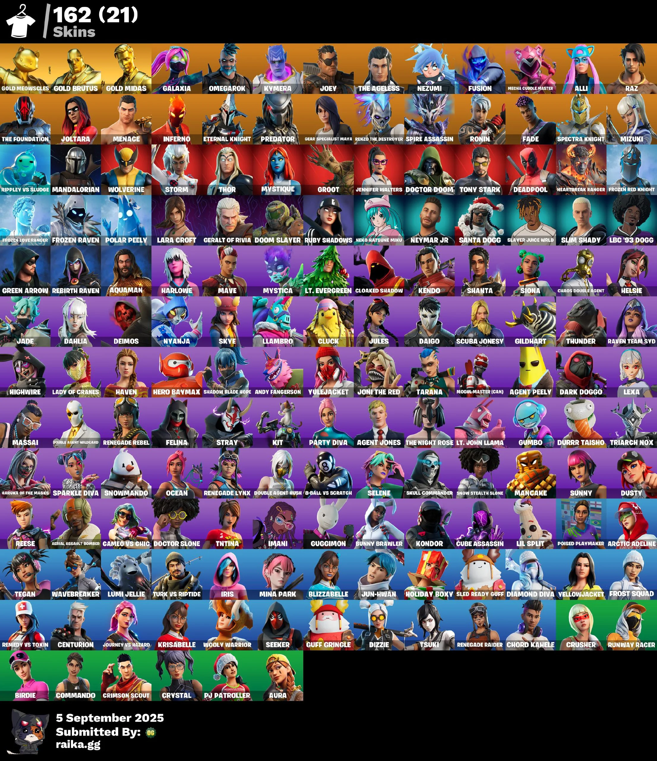 ⭕️ PC/PSN/XBOX ⭕️ 162 skins | Renegade Raider | Gold Meowscles | Gold Brutus | Gold Midas | Galaxia | Omegarok | Kymera | Joey | The Ageless | Nezumi | #S4