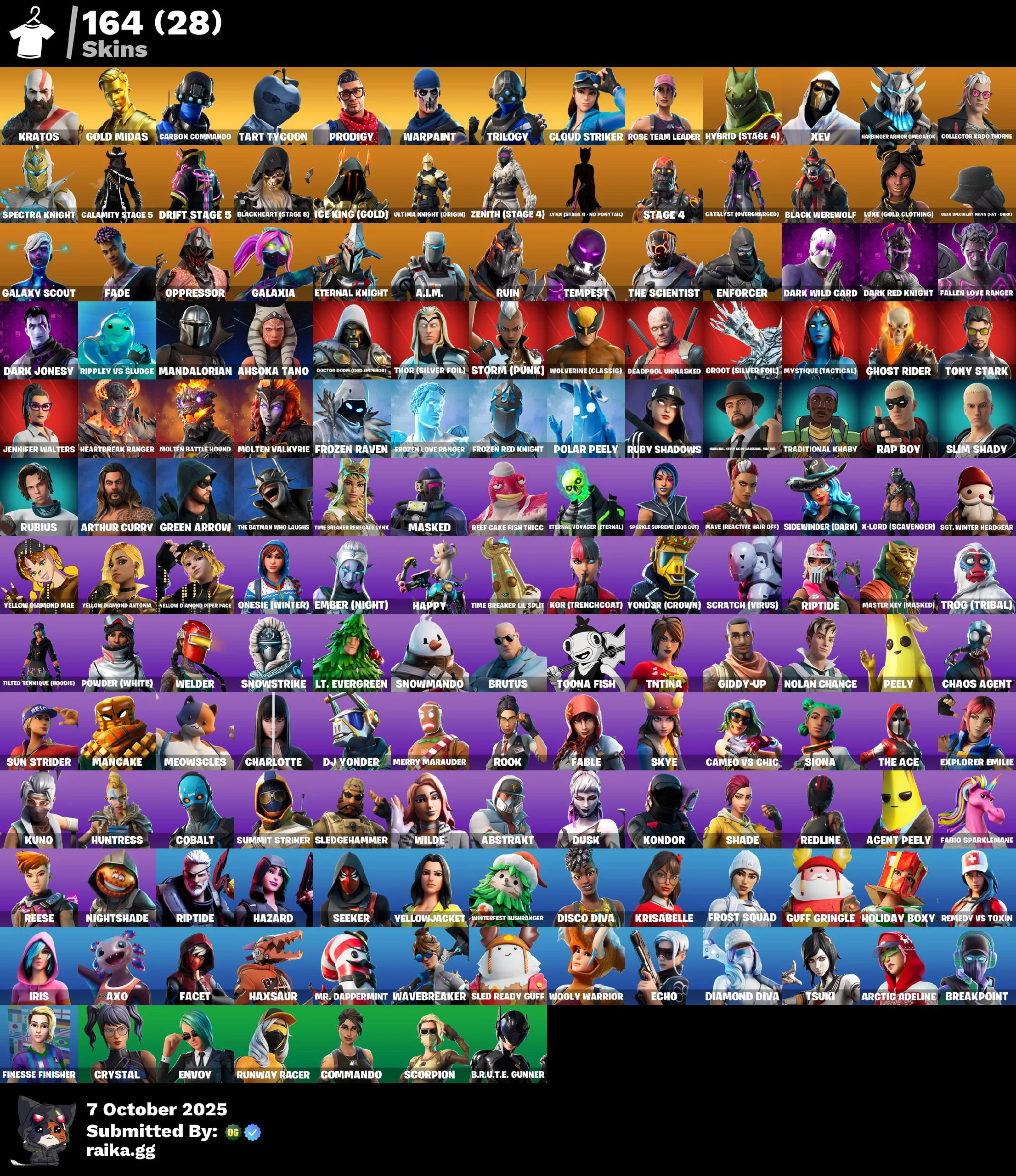 🔥[PC/PSN/XBOX] 164 skins | OG STW | Leviathan Axe | Tony Stark | Peely | Harley Hitter | Galaxia | Star Wand lai093
