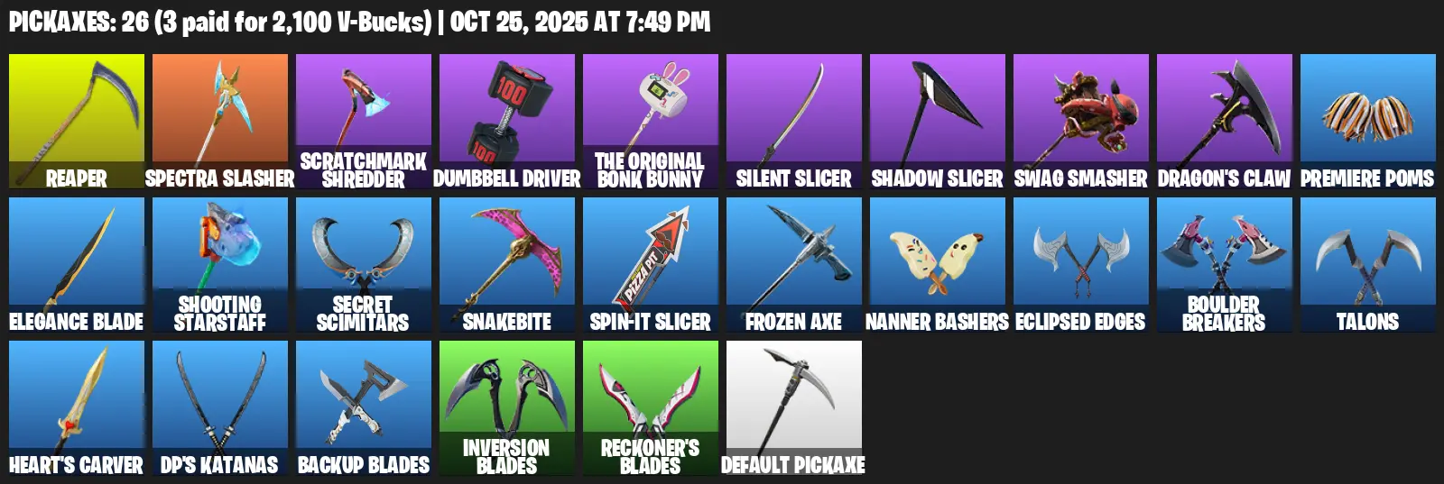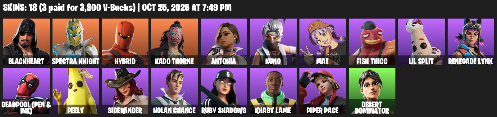[PC/PSN/XBOX] | 18 skins | Reaper Axe | Blackheart | Spectra Knight | Hybrid | Kado Thorne | Antonia | Kuno | Mae | Fish Thicc | Lil Split | S4G