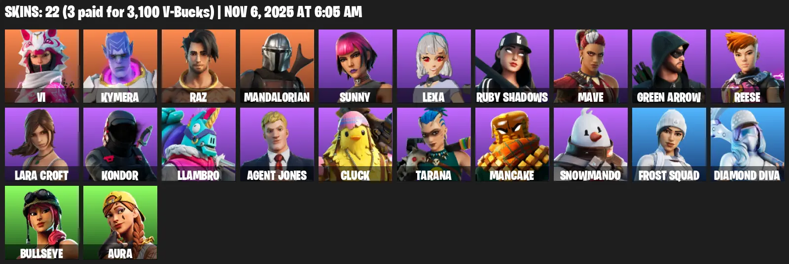 [PC/PSN/XBOX] | 22 skins | Lara Croft | Vi | Kymera | Raz | Mandalorian | Sunny | Lexa | Ruby Shadows | Mave | Green Arrow | Reese | Kondor | S4G