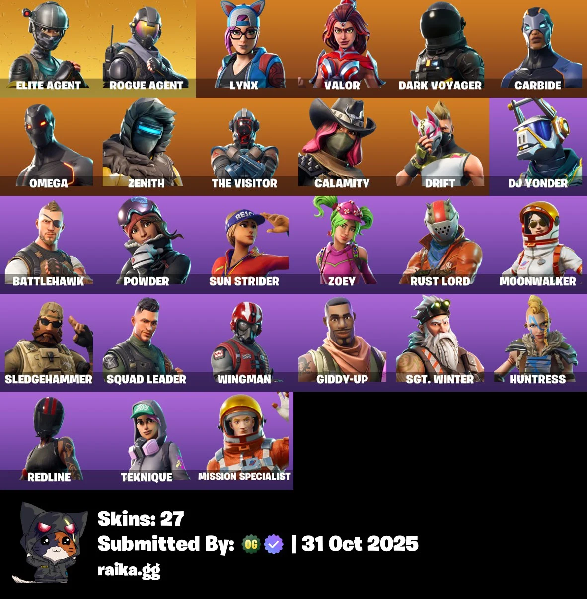 [PC/PSN/XBOX] 27 skins | Take The L | Elite Agent | Rogue Agent | Lynx | Valor | Dark Voyager | Carbide | Omega | Zenith | The Visitor | Calamity | Drift | DJ Yonder | 450 VB