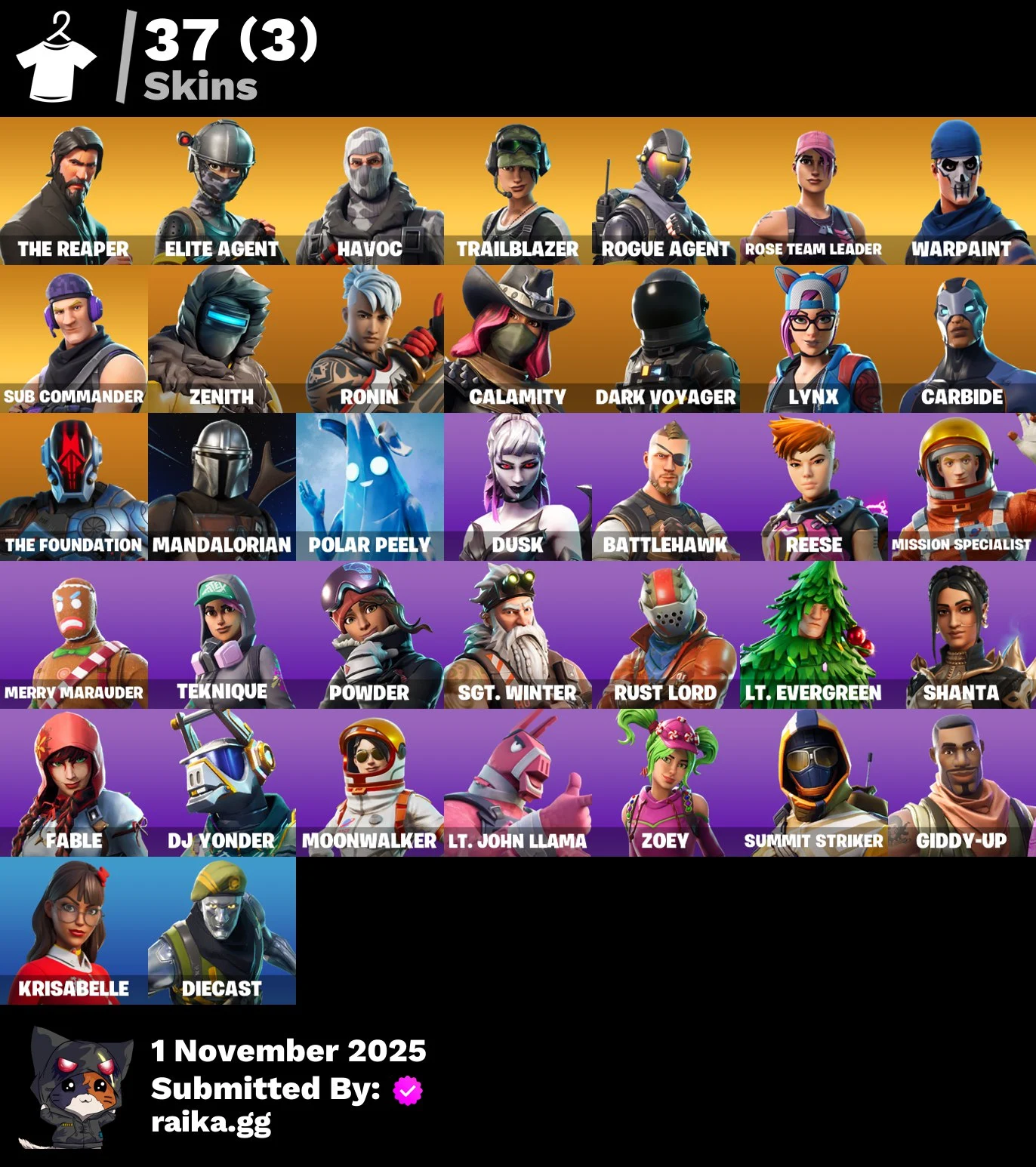 [PC/PSN/XBOX] 37 skins | OG STW | The Reaper | Elite Agent | Havoc | Trailblazer | Rogue Agent | Sub Commander | Zenith | Ronin | Calamity | Dark Voyager | Lynx | 100 VB