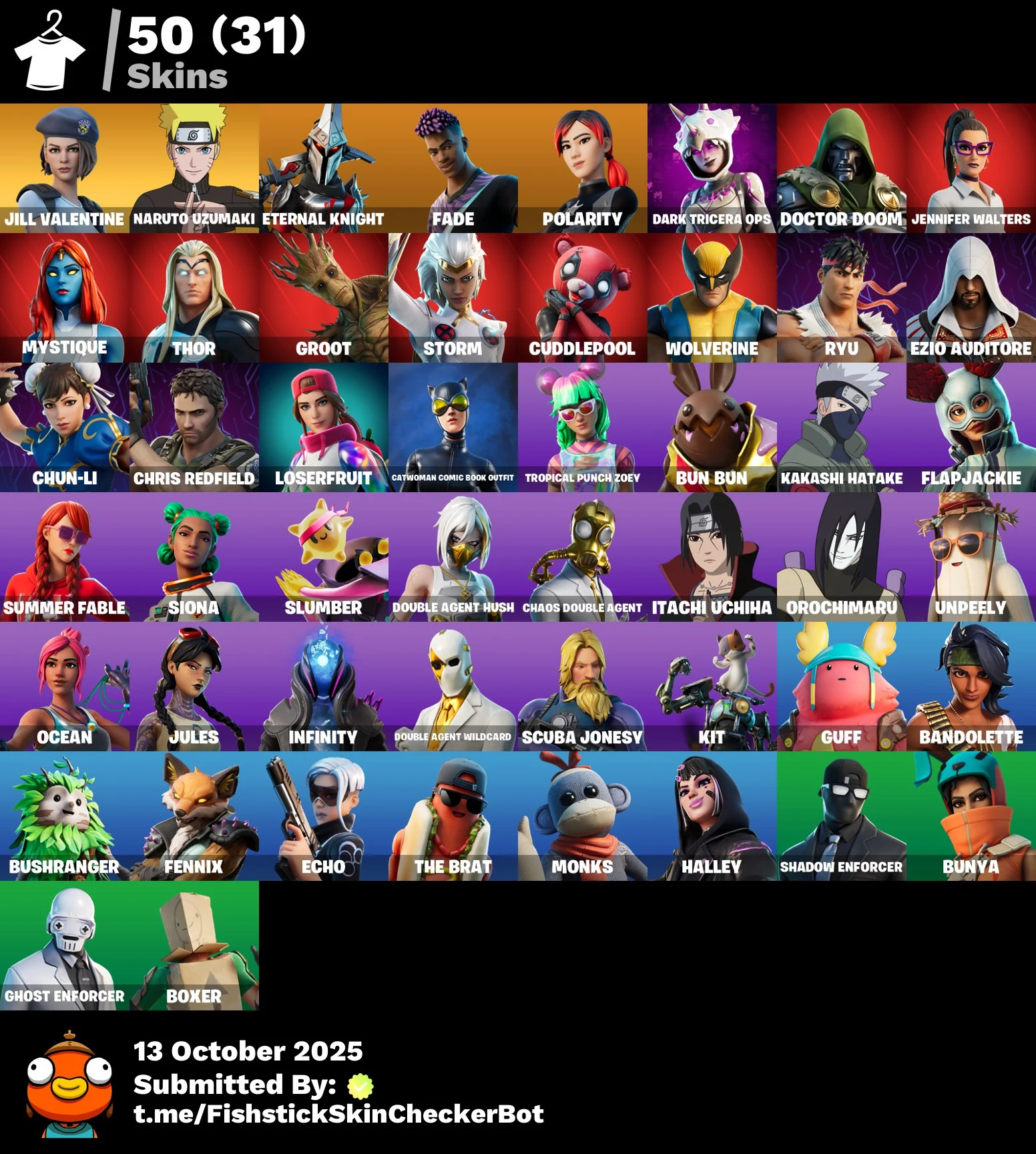 [PC/PSN/XBOX] 50 skins Itachi | | Jill Valentine | Naruto Uzumaki | Orochimaru | Chris Redfield | kakashi | Chun-Li | Ruy | Catwoman Comic Book | Eternal Knight | Fade | Polarity | 100 VB