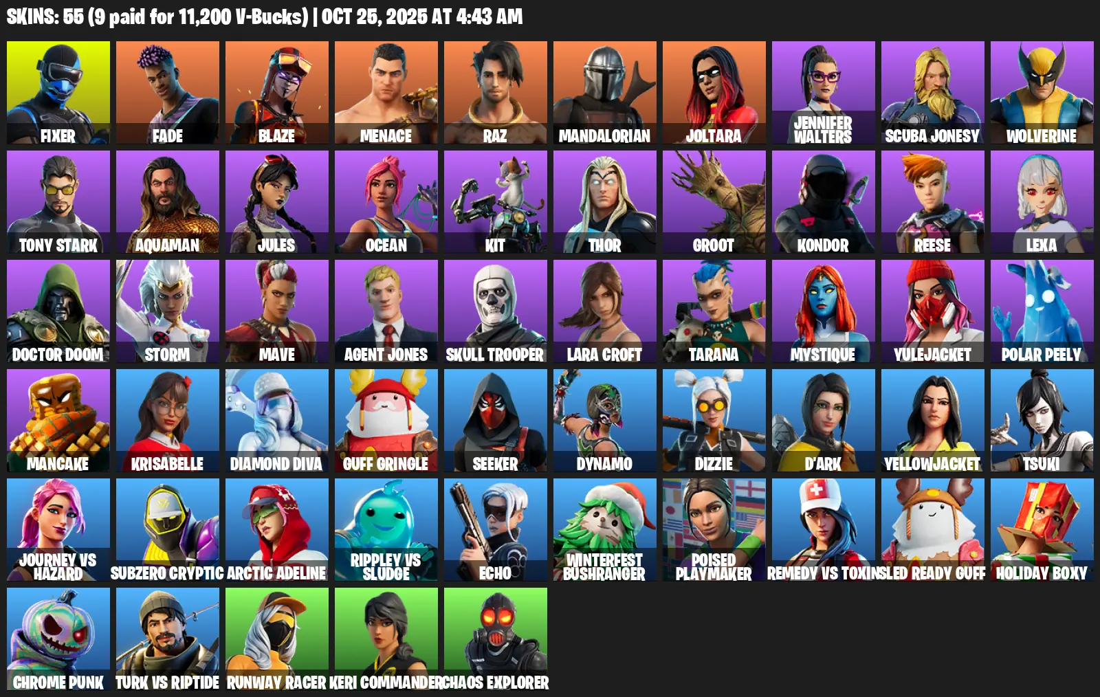 [PC/PSN/XBOX] | 55 skins | Lara Croft | Fixer | Fade | Blaze | Menace | Raz | Mandalorian | Joltara | Jennifer Walters | #JMJ2170 | #MBFN