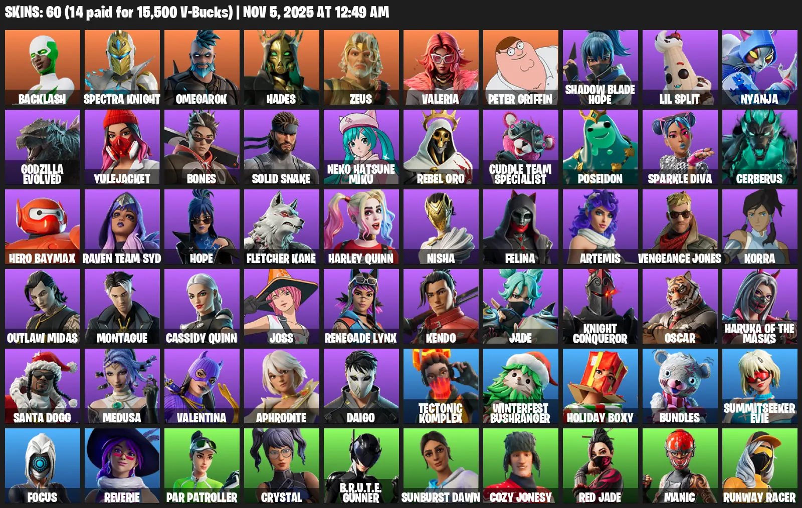 [PC/PSN/XBOX] | 60 skins | Backlash | Spectra Knight | Omegarok | Hades | Zeus | Valeria | Peter Griffin | Shadow Blade Hope | #HMZ9273 | #MBFN