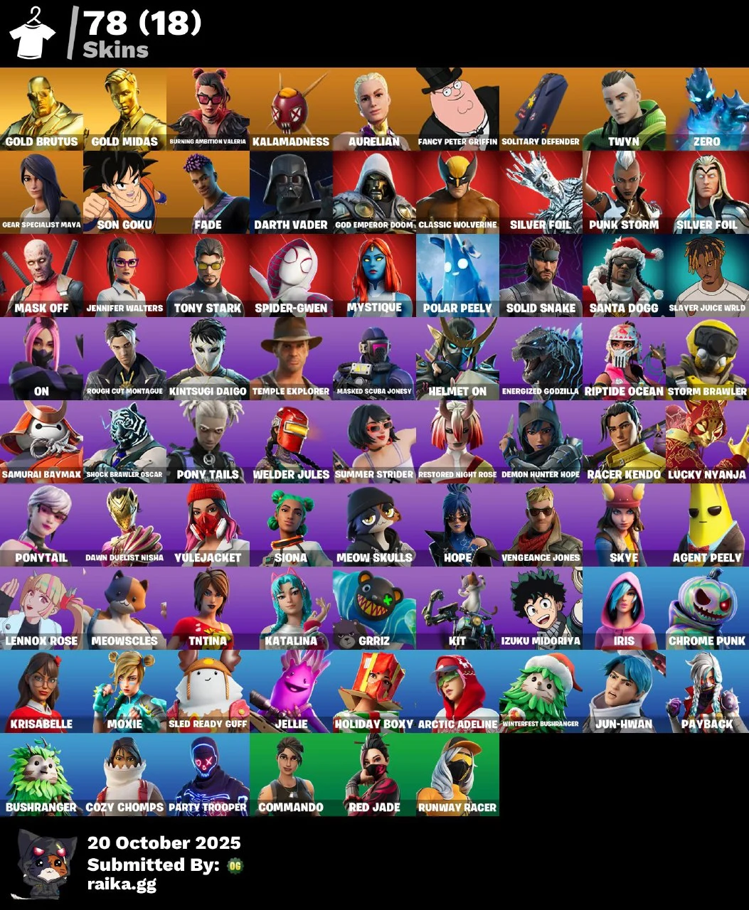 [PC/PSN/XBOX] 78 skins | Tony Stark | Son Goku | Mystique | Star Wand | Gold Brutus | Gold Midas mssh810