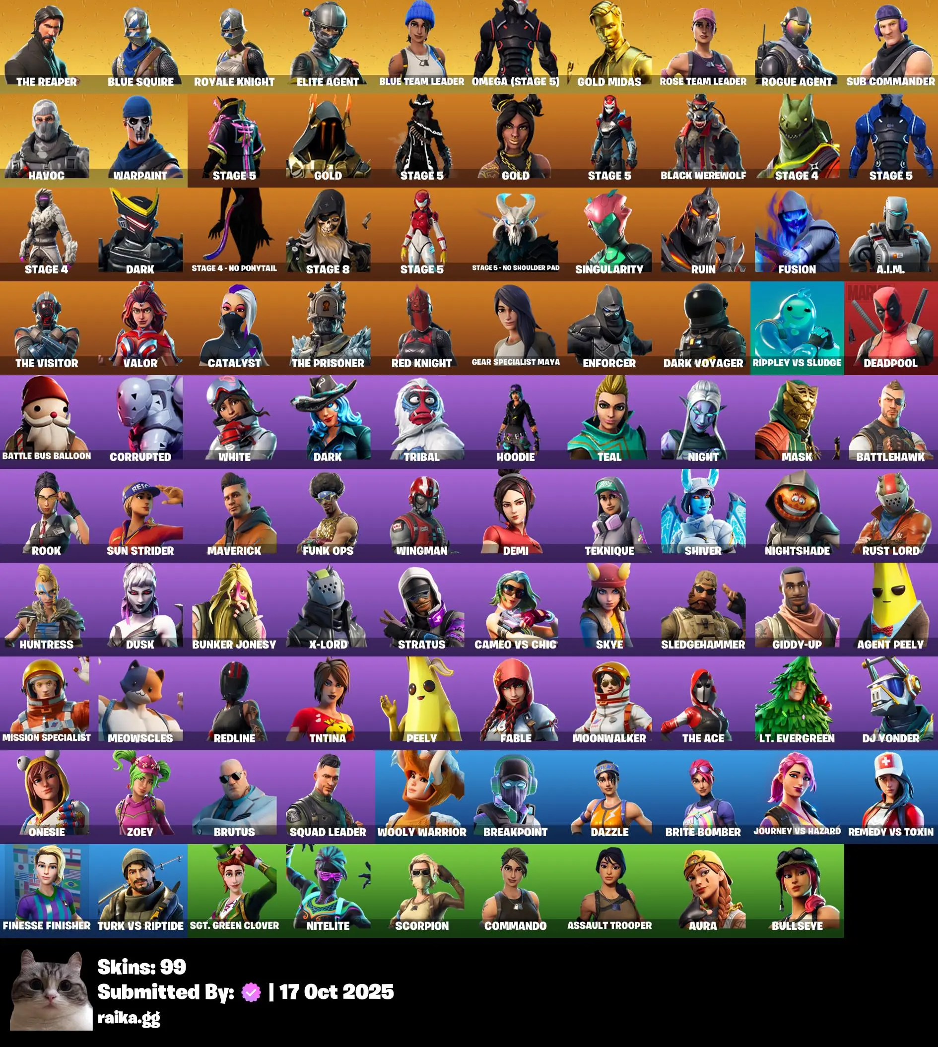 [PC/PSN/XBOX] 99 skins | OG STW | The Reaper | Blue Squire | Royale Knight | Elite Agent | Blue Team Leader | Omega (stage 5) | Gold Midas | Rogue Age