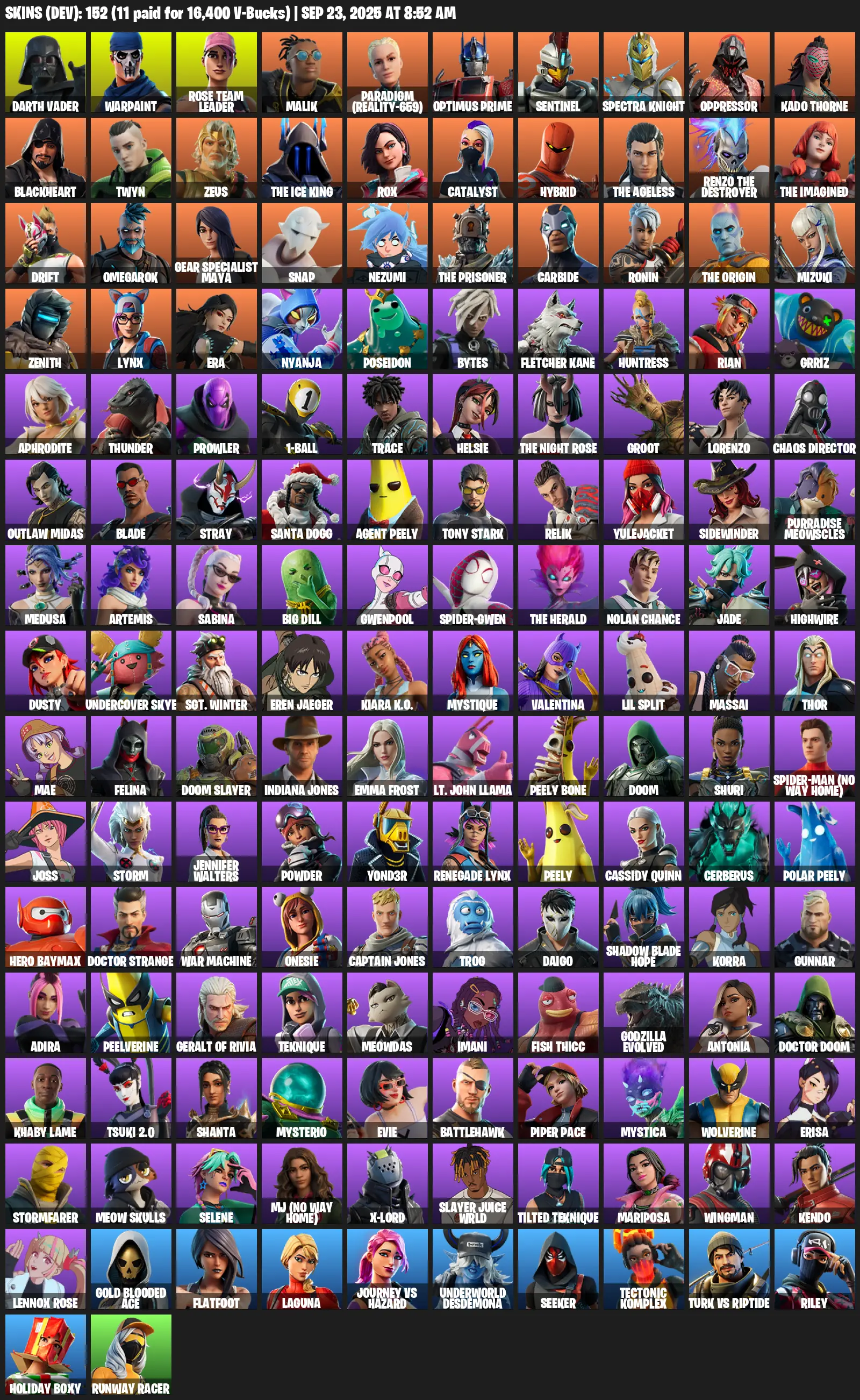 [PC/PSN/XBOX] | 152 skins | 565 V-bucks | OG STW | Darth Vader | Warpaint | Rose Team Leader | Malik | Paradigm (Reality-659) | #JNA5497 | #MBFN