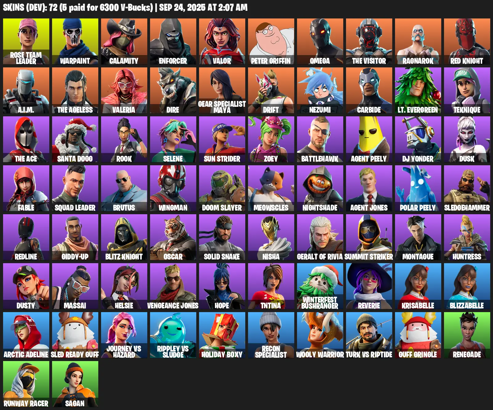 [PC/PSN/XBOX] | 72 skins | 915 V-bucks | OG STW | Omega | Rose Team Leader | Warpaint | Calamity | Enforcer | Valor | Peter Griffin | #AXX9320 | #MBFN