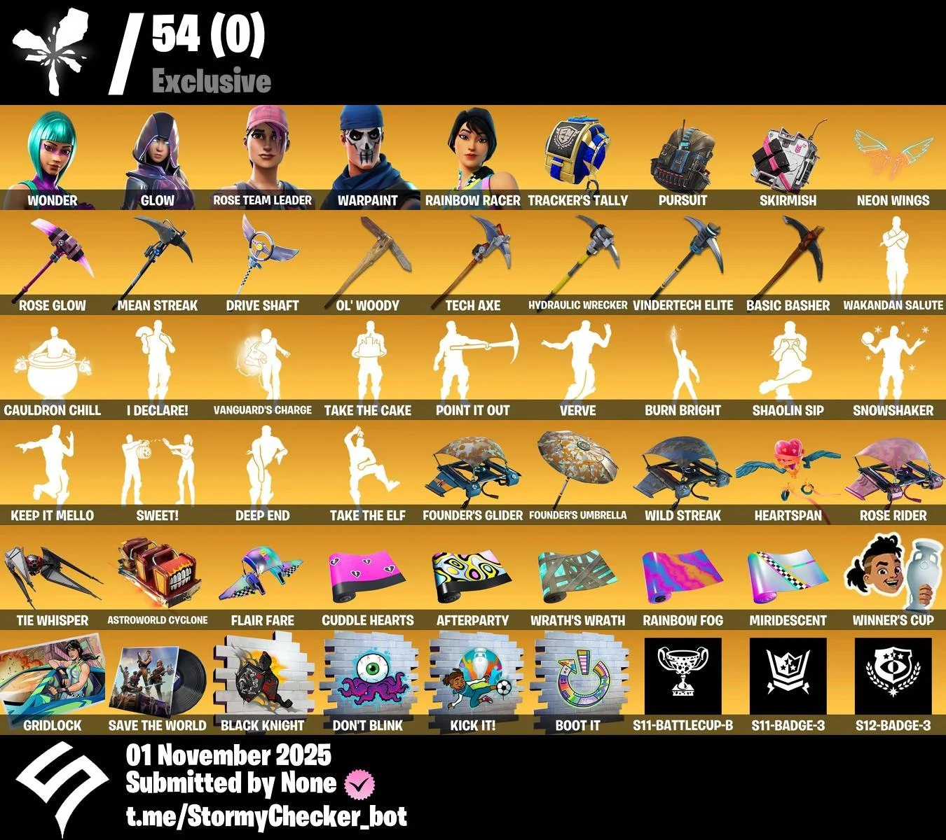 [PC/XBL/PSN] | 148 Skins | OG STW | Wonder | Glow | Rose Team Leader | Warpaint | Rainbow Racer | Rose Glow | Mean Streak | Drive Shaft | S11-BattleCup-B | S11-Badge-3 | S12-Badge-3 | 800 VB