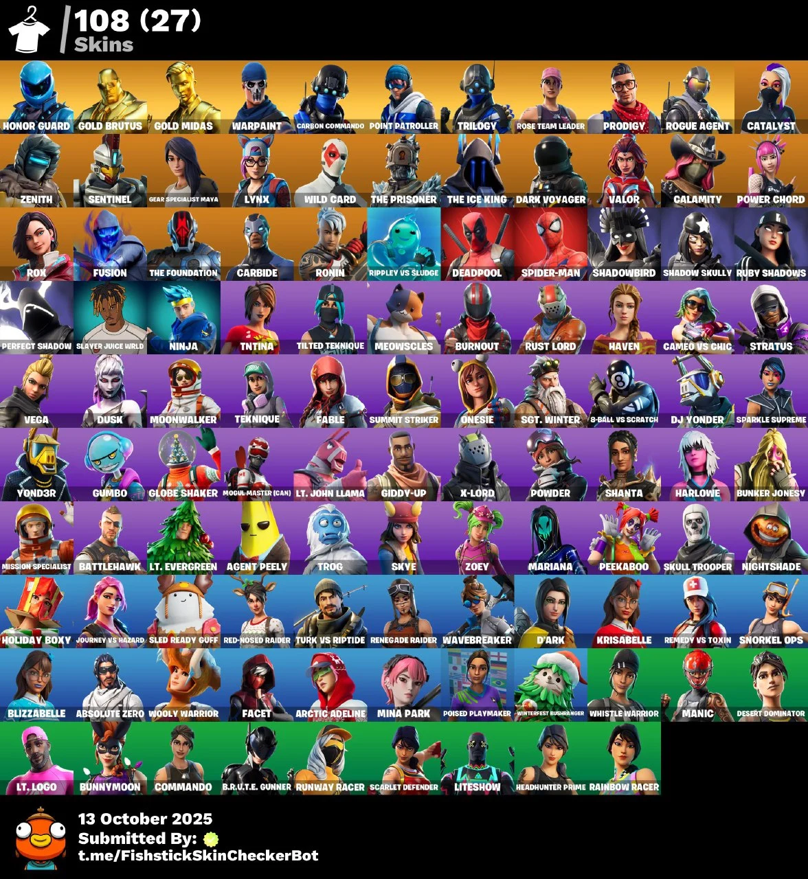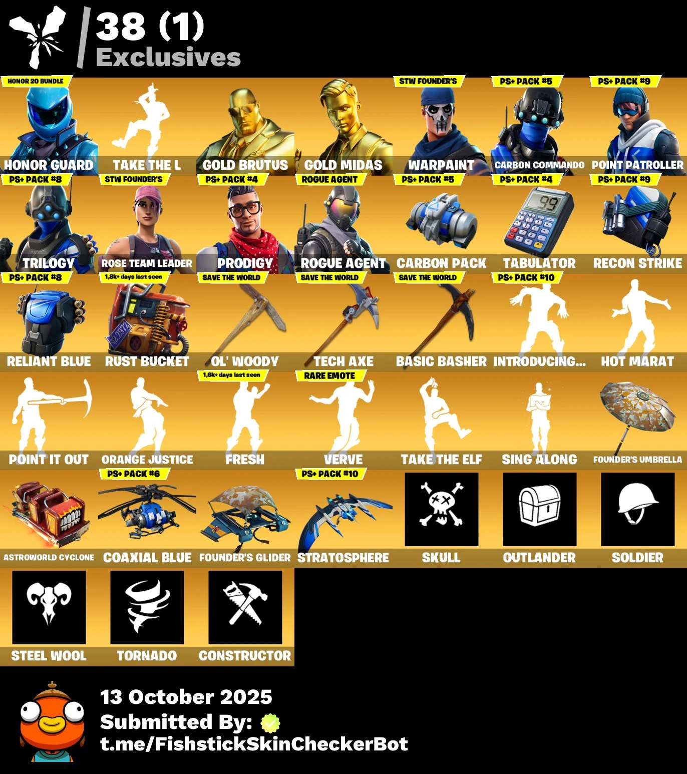 [PC/XBOX] 108 skins | OG STW Honor Guard | Renegade Raider | Gold Brutus | Gold Midas | Rogue agent | Carbon Commando | Point Patroller | Trilogy | Prodigy | 250 VB