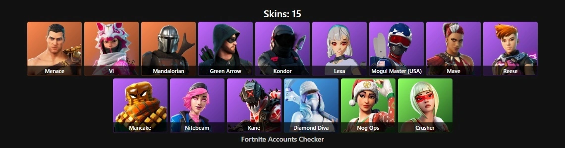PC/XBOX 15 Skins⚡ | Menace | Vi | Mandalorian | Green Arrow | Kondor | Lexa | Mogul Master (USA) | Mave | Reese | Mancake | Nitebeam | Kane | Diamond Diva