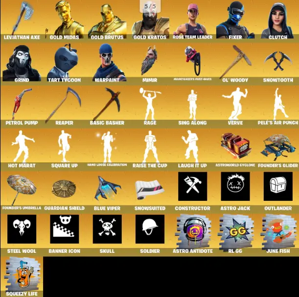 [PC\XBOX] 173 skins | OG STW | Leviathan Axe | Gold Midas | Gold Brutus | Gold Kratos | Fixer | Clutch | Grind | Tart Tycoon | Joey | Alli | The Cube Queen