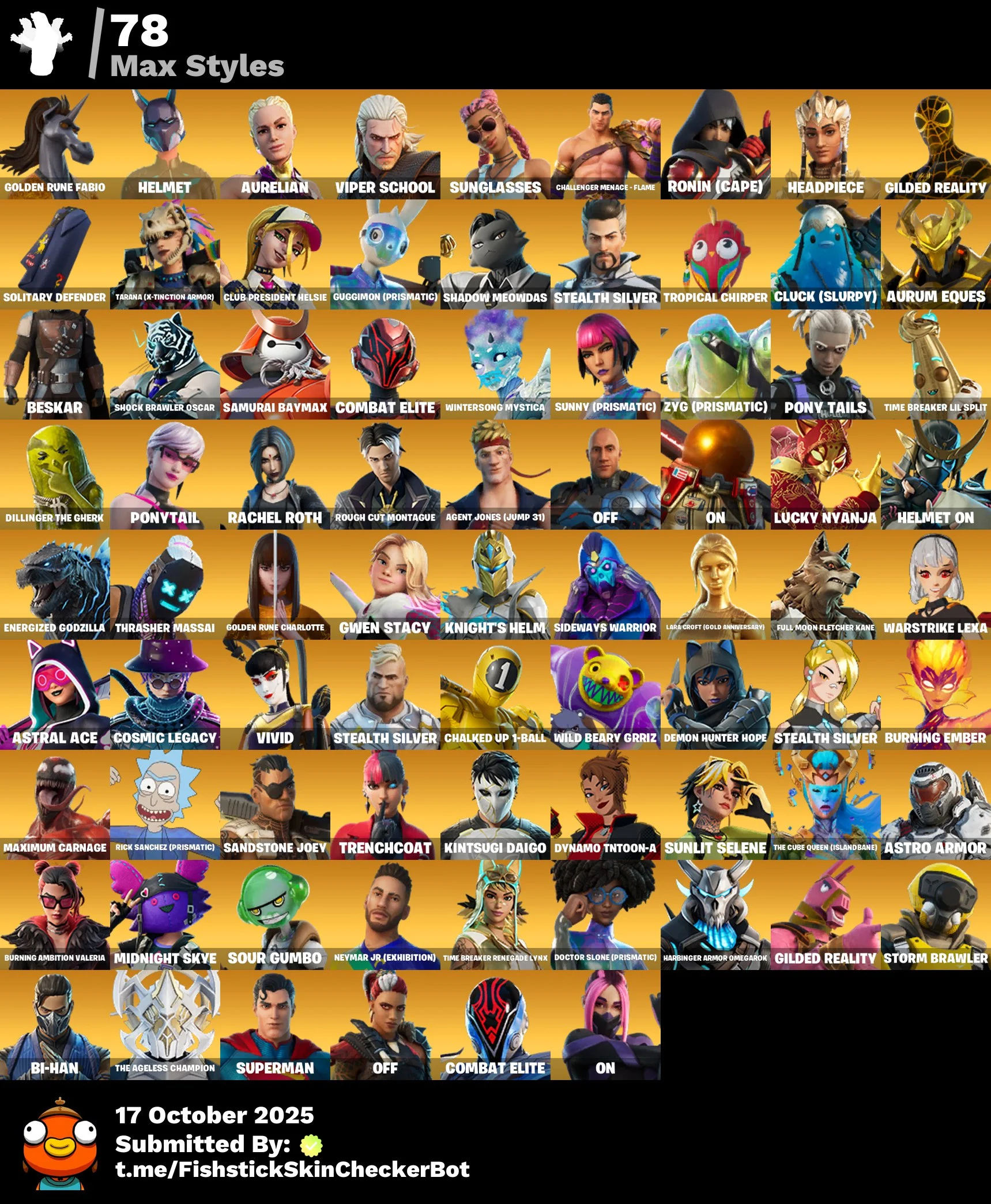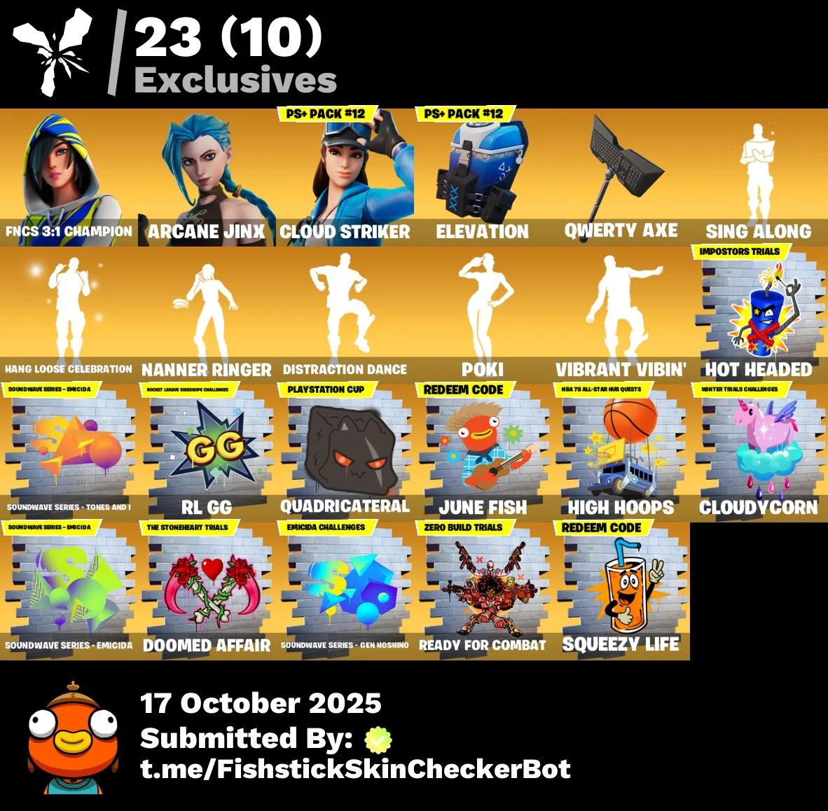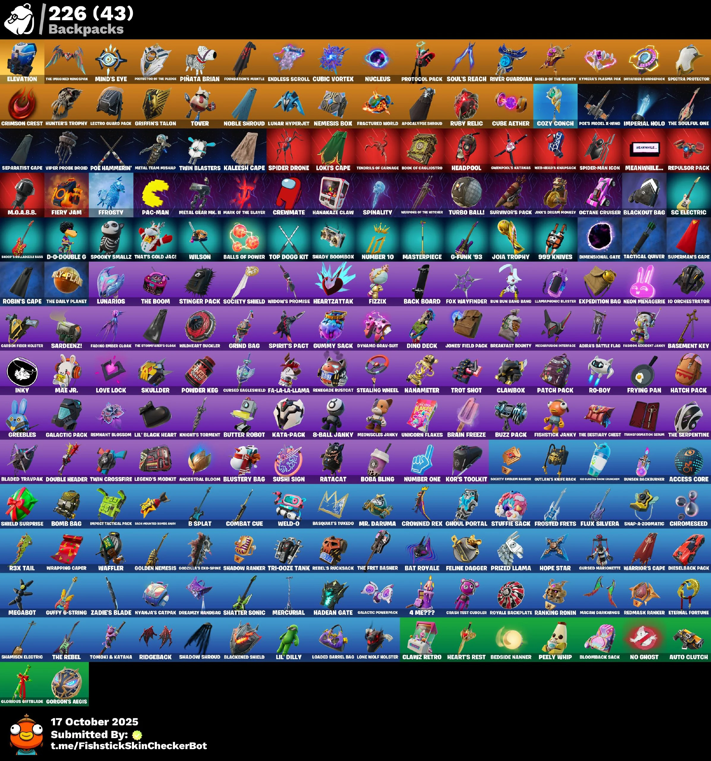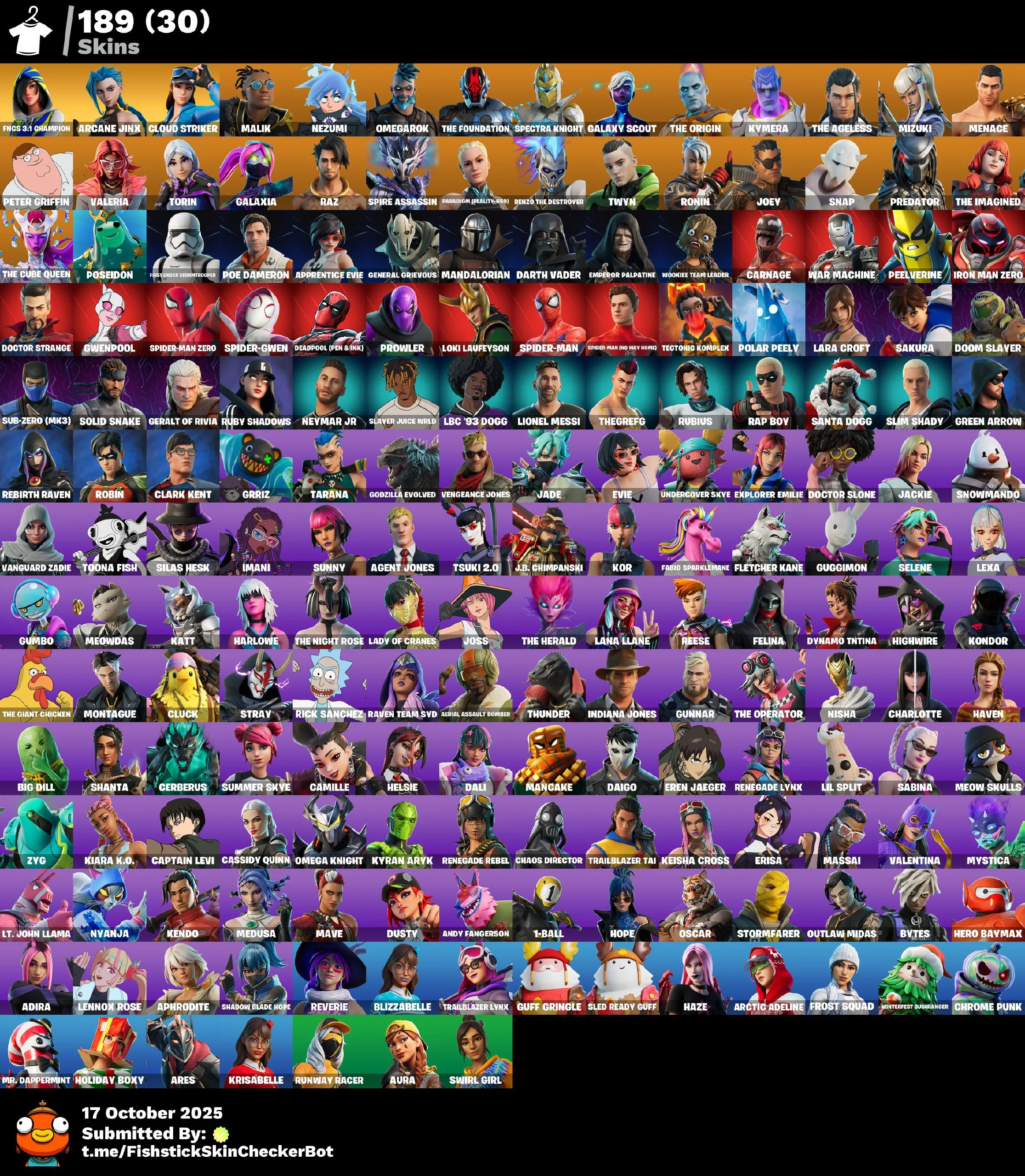 [PC/XBOX] 189 skins | Arcane Jinx | FNCS 3:1 Champion | Captain Levi | Cloud Striker | Malik | Nezumi | Omegarok | The Foundation | Spectra Knight | Galaxy Scout | 250 VB