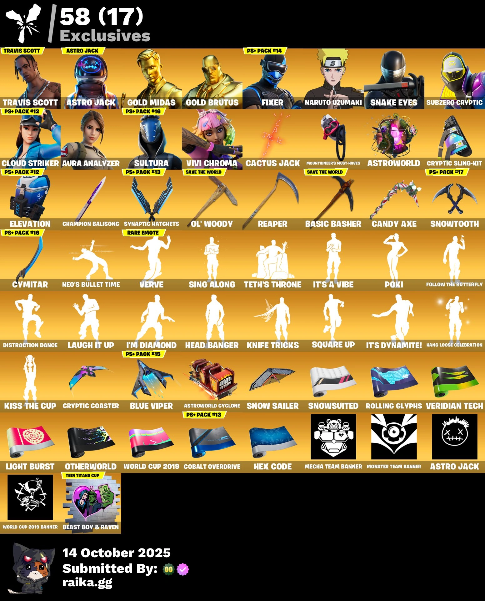 [PC/XBOX] 403 skins | Travis Scott | Renegade Raider | Astro Jack | Gold Midas | Gold Brutus | Fixer | Naruto Uzumaki | Snake Eyes | Subzero Cryptic | 550 VB