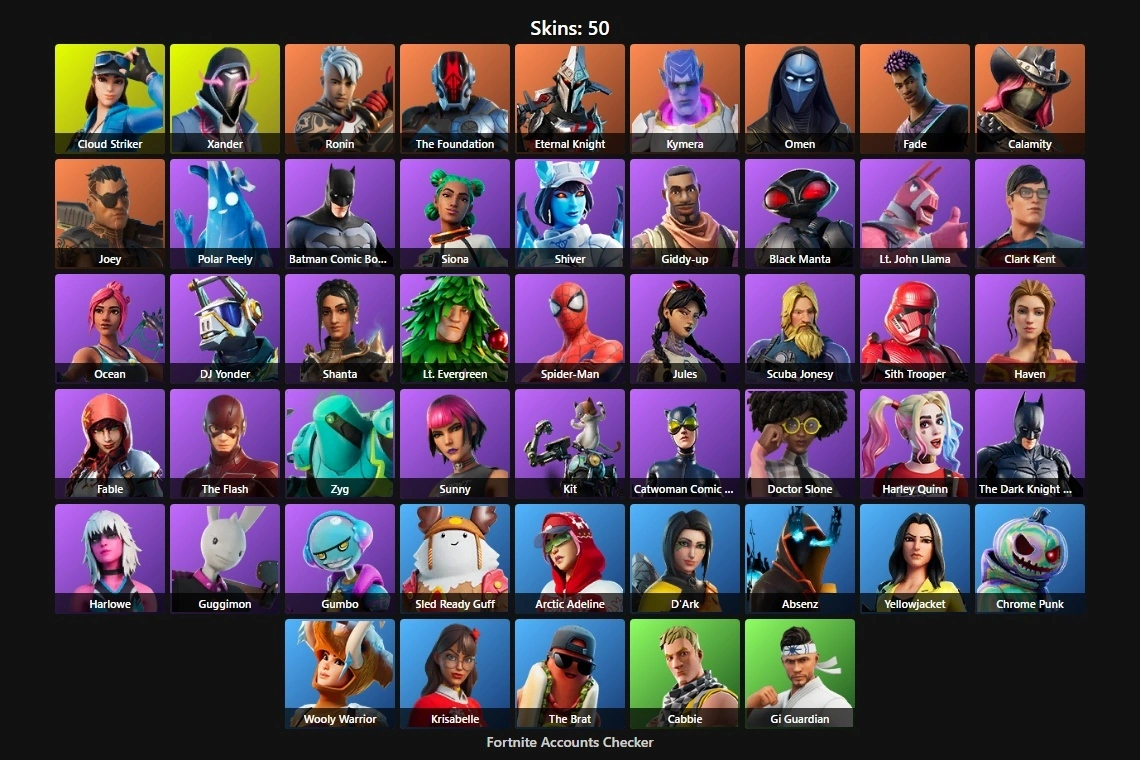 PC/XBOX 50 Skins⚡ | Cloud Striker | Xander | Ronin | The Foundation | Eternal Knight | Kymera | Omen | Fade | Calamity | Joey | Polar Peely