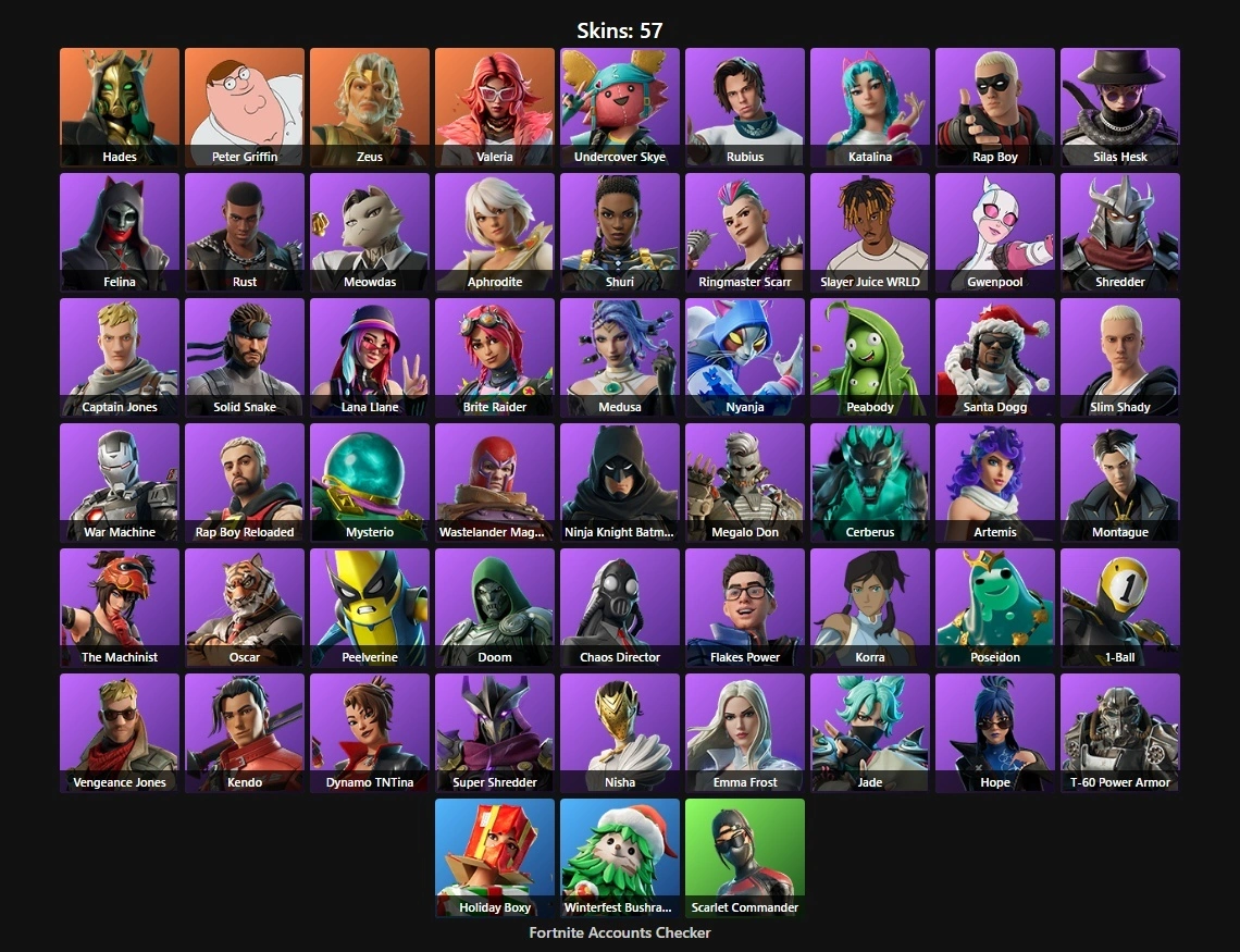 PC/XBOX 57 Skins⚡ | Hades | Peter Griffin | Zeus | Valeria | Undercover Skye | Rubius | Katalina | Rap Boy | Silas Hesk | Felina | Rust | Meowdas | Aphrodite