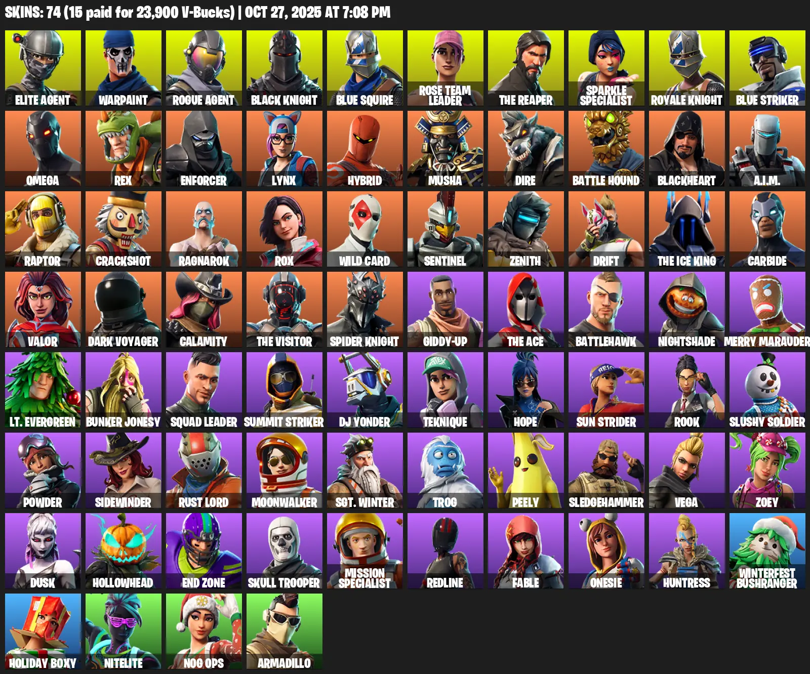 [PC/XBOX] | 74 skins | Take The L | Floss | OG STW | Black Knight | Sparkle Specialist | Royale Knight | The Reaper | Elite Agent | Blue Squire | S4G