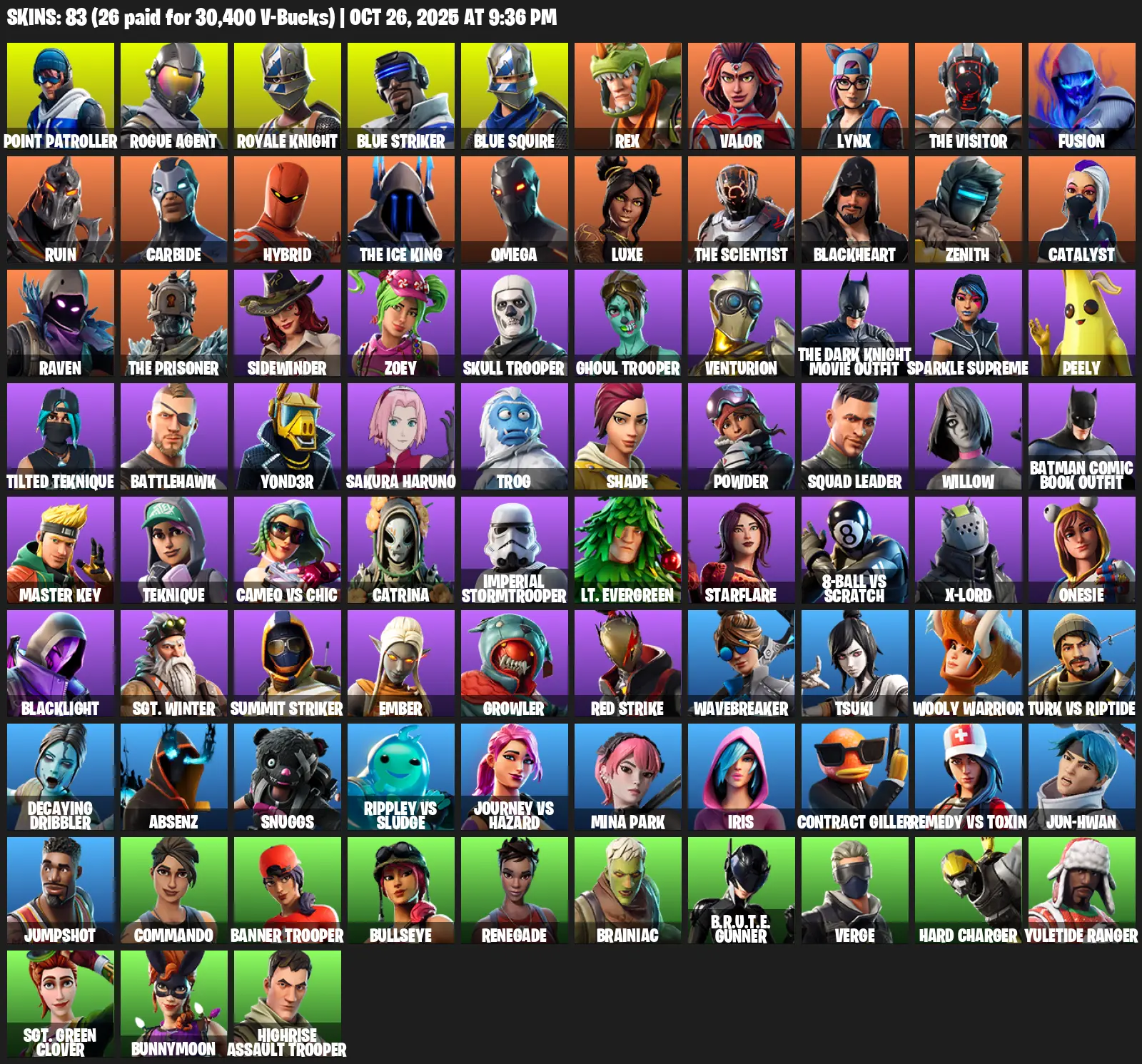 [PC/XBOX] | 83 skins | Royale Knight | Blue Squire | Omega | Reaper Axe | Point Patroller | Rogue Agent | Blue Striker | Rex | Valor | Lynx | S4G