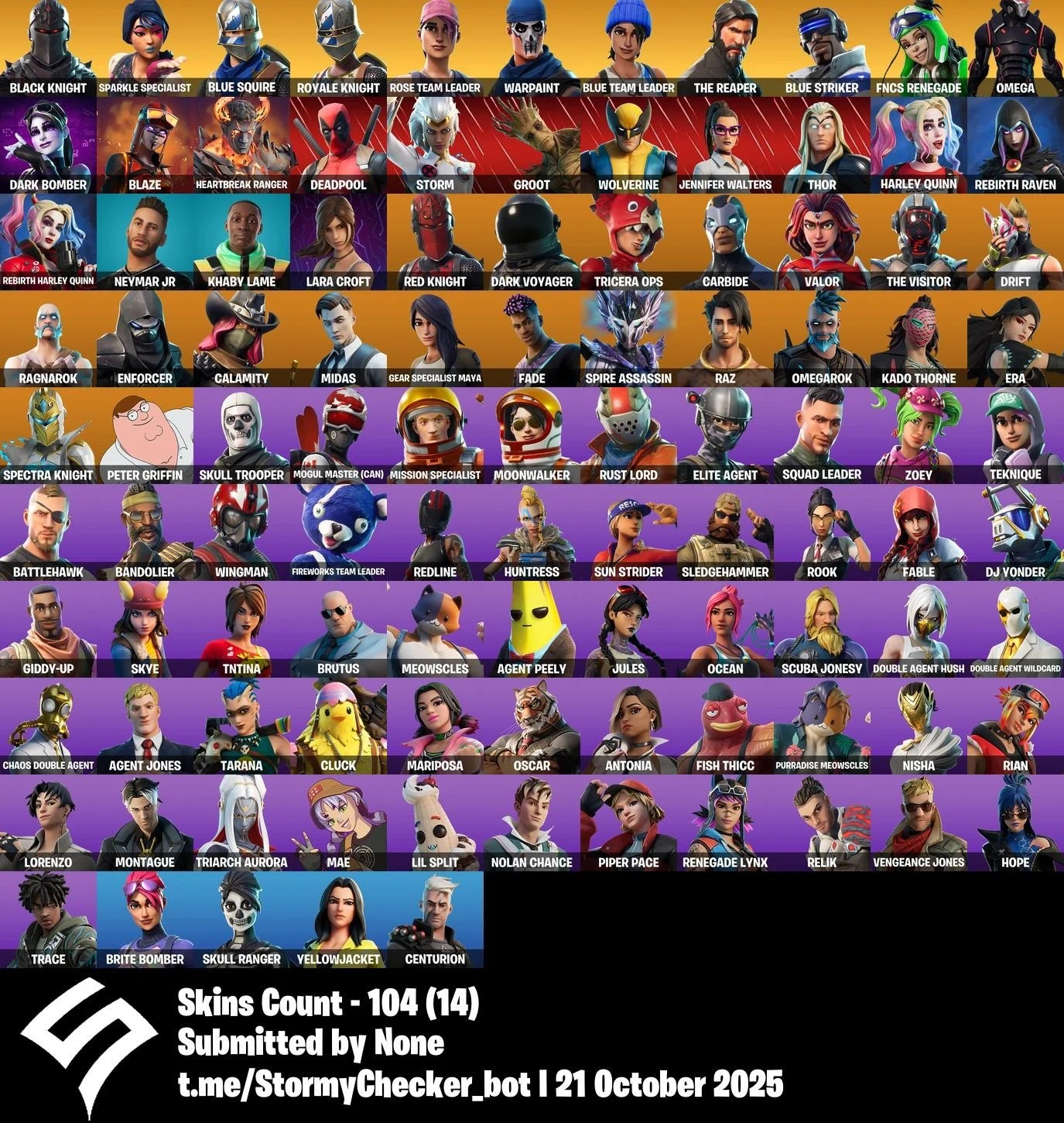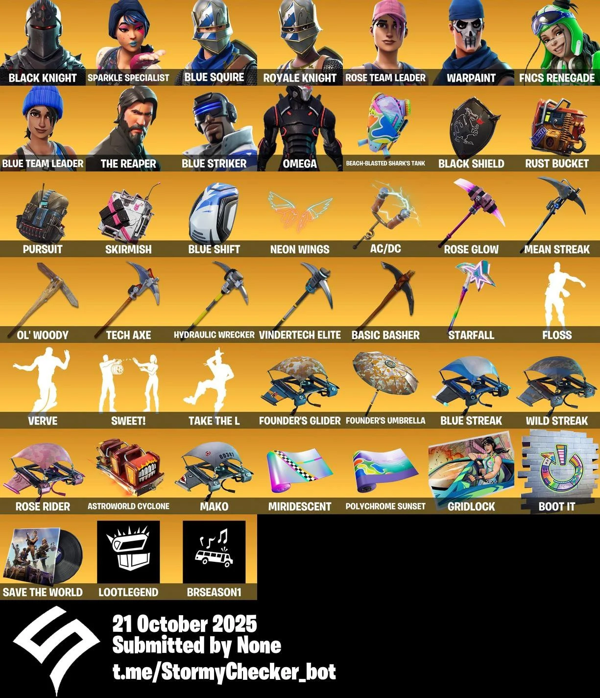 [PC/XBOX/PSN] | 104 Skins | OG STW | Black Knight | Sparkle Specialist | Blue Squire | Royale Knight | Rose Team Leader | Warpaint | AC/DC | Rose Glow | Mean Streak | LootLegend | BRSeason1 | 1450 VB