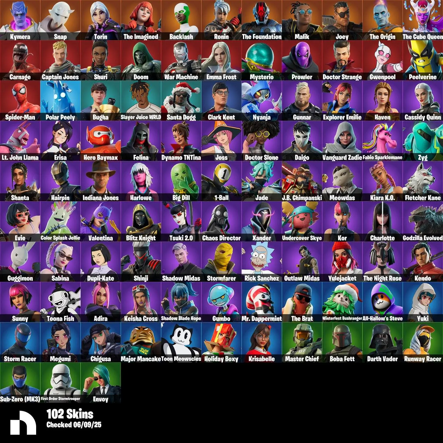 #PER266 [PC/XBOX] 102 Skins | Nanner Ringer | Laugh It Up | Carnage | Nyanja | Master Chief | Gunnar | Explorer Emilie | Kymera | Mr. Dappermint | 0 VB