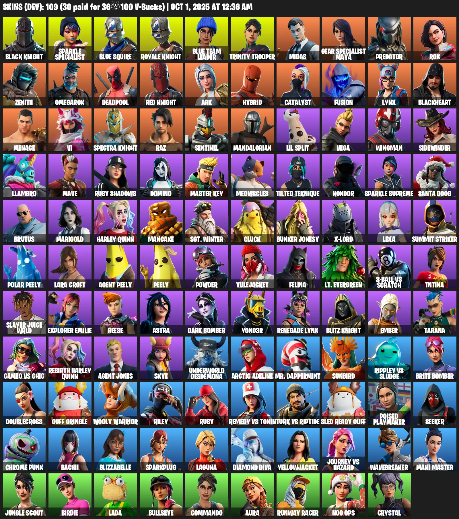 [PSN/XBOX/PC] 109 Skins | Black Knight | Sparkle Specialist | Blue Squire | Royale Knight | Blue Team Leader | Trinity Trooper | Midas | Gear Specialist Maya | Predator | Rox | Zenith | Omegarok | Deadpool | Red Knight | Ark | Hybrid | Catalyst | Fusion