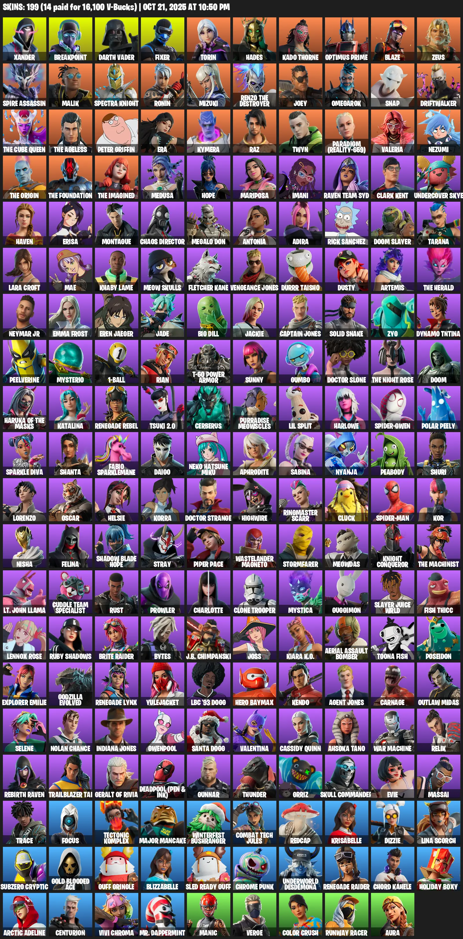 [PSN/XBOX/PC] 199 Skins | Xander | Breakpoint | Darth Vader | Fixer | Torin | Hades | Kado Thorne | Optimus Prime | Blaze | Zeus | Spire Assassin | Malik | Spectra Knight | Ronin | Mizuki | Renzo the Destroyer | Joey | Omegarok | Snap | Driftwalker