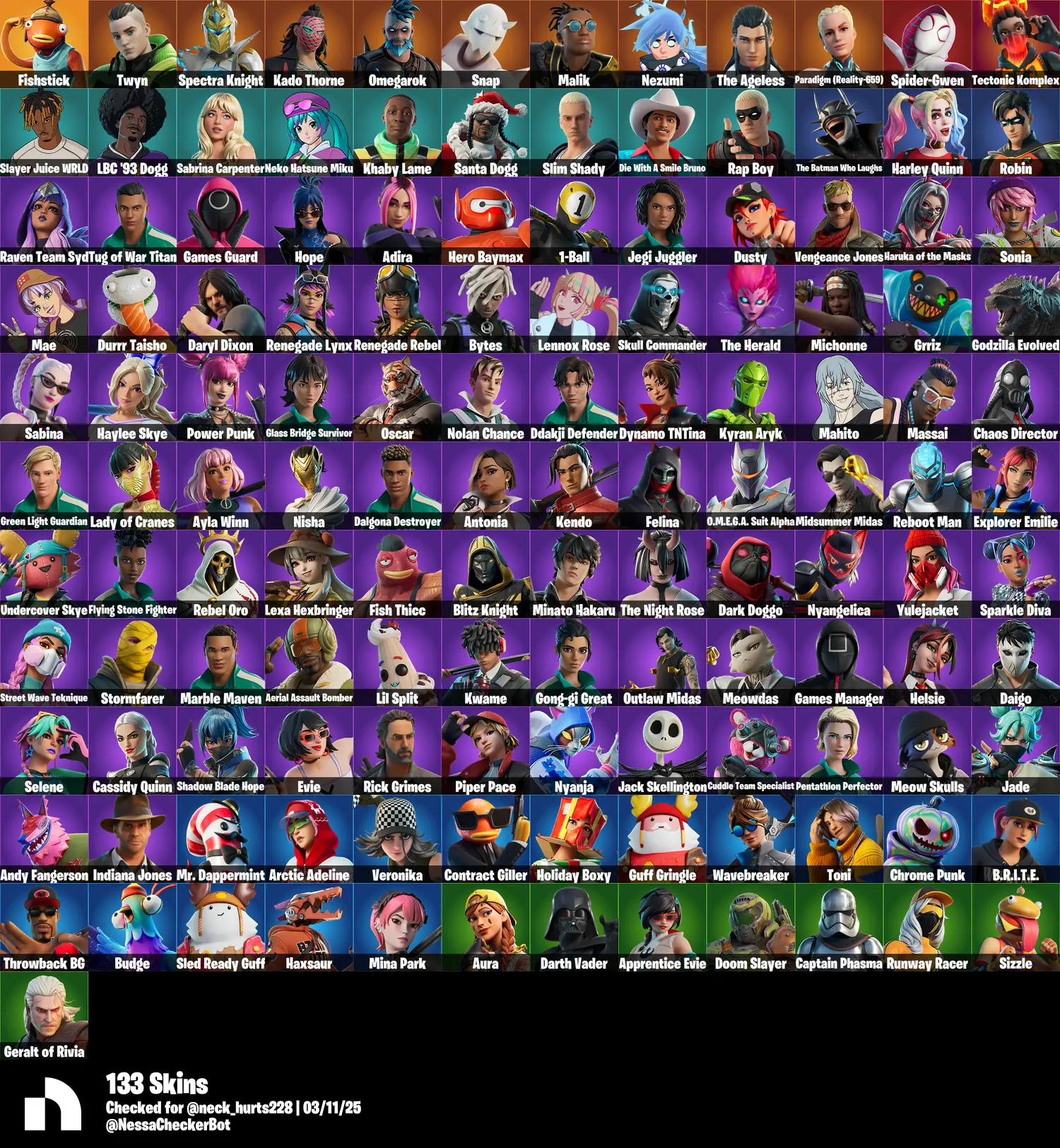#SID8 [PC/PSN/XBOX] 133 Skins | Fishstick | Diamond Pony | Raven Team Syd | Tug of War Titan | Games Guard | Hope | Adira | Mr. Dappermint | 400 VB