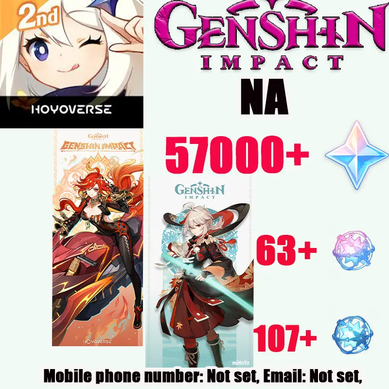 [NA]Female| AR55|Mavuika+Kaedehara Kazuha+57000 Rough Stones+63 Fate Intertwined+107 Fate Encounter+Random 4-star Character|Email: Not Set||Shipping Immediately