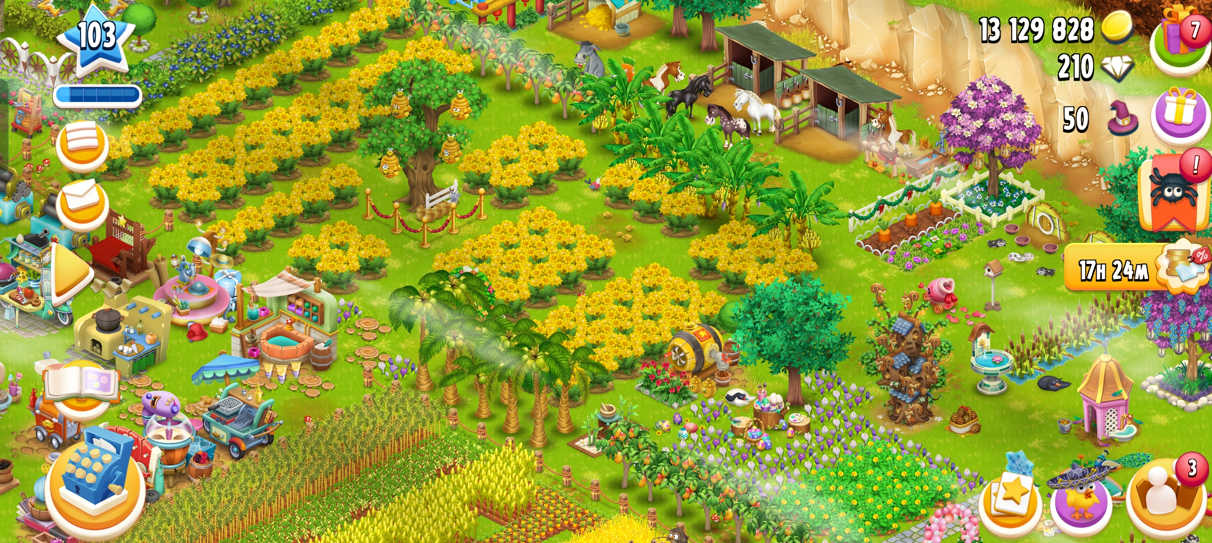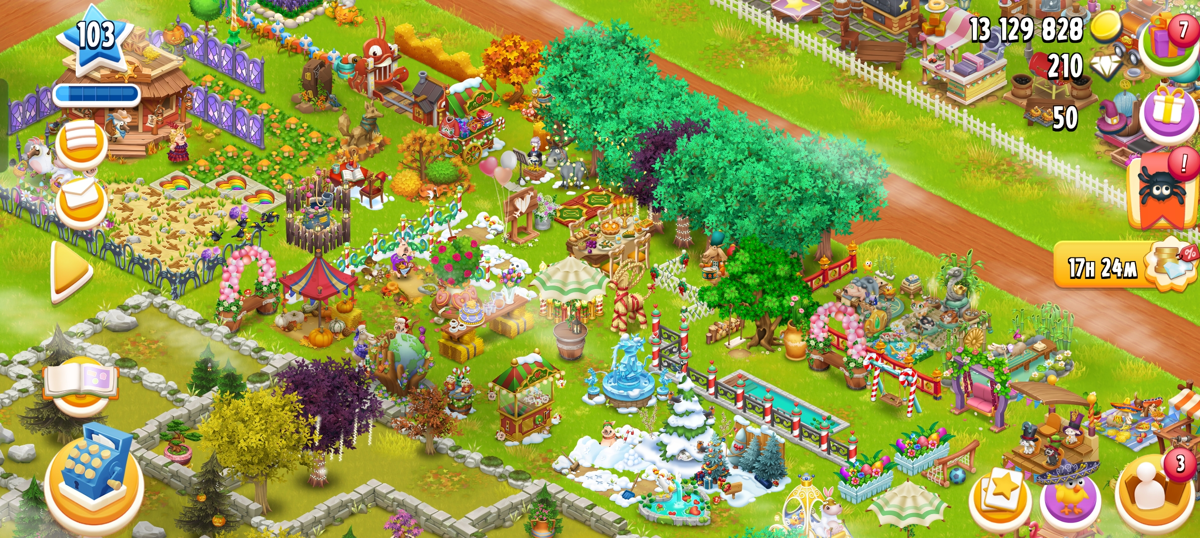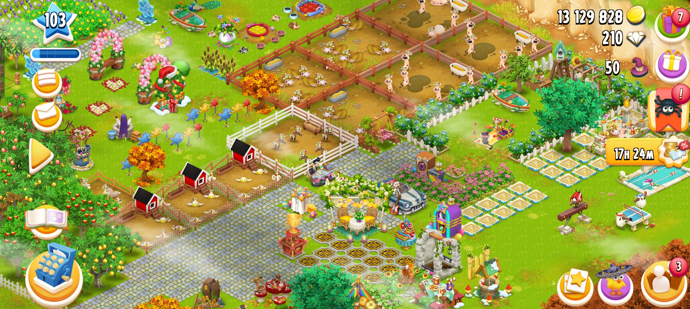 🌈Decorative🌈Level: 103🌈Barn:1950🌈Silo:1850🌈gems:210🌈Coins:13129828🌈Instant Delivery🌈8100% Safe Access🌈Best Price 🌈